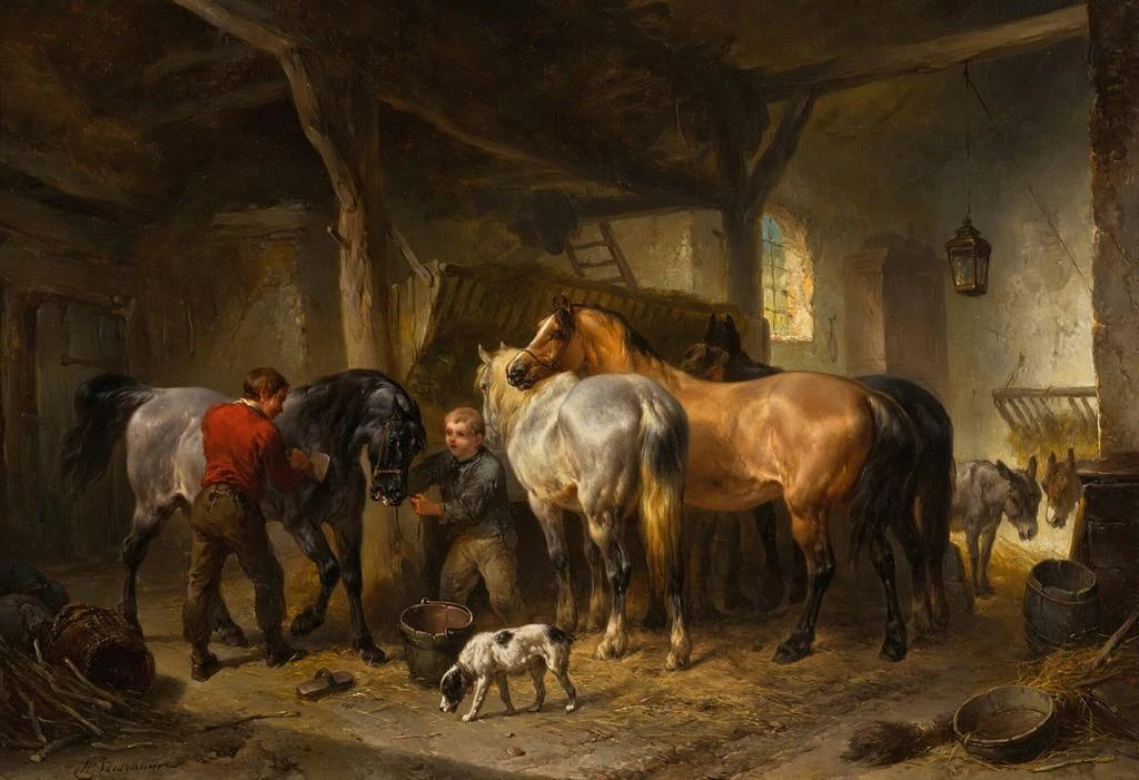 Reproduction | Chevaux dans une écurie - Wouterus Verschuur