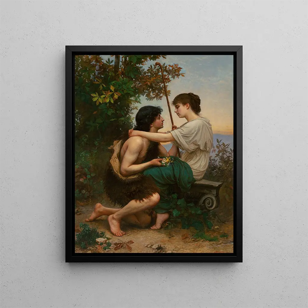 Reproduction Daphnis et Chloé - Camille Félix Bellanger – Introduction captivante Dans le monde de l'art, certaines œuvres transcendent le simple cadre de la peinture pour devenir des récits visuels chargés d'émotion et de poésie. "Daphnis et Chloé" de Camille Félix Bellanger en est un exemple éclatant. Cette œuvre, inspirée de l'histoire d'amour mythologique entre Daphnis et Chloé, évoque la beauté de la nature et la pureté des sentiments. En plongeant dans cette reproduction, le spectateur est immédiatement transporté dans un univers où l'amour et la nature s'entrelacent, créant une atmosphère à la fois sereine et envoûtante. La délicatesse des traits et la richesse des couleurs invitent à une contemplation profonde, rendant chaque regard sur le tableau unique et personnel. Style et singularité de l’œuvre Le style de Bellanger se distingue par une finesse remarquable et une attention minutieuse aux détails. Dans "Daphnis et Chloé", les figures sont rendues avec une grâce et une légèreté qui semblent presque éthérées. Les corps des protagonistes, délicatement modélisés, se fondent harmonieusement dans un décor luxuriant où la nature joue un rôle central. Les jeux de lumière et d'ombre, ainsi que les nuances subtiles des couleurs, créent une atmosphère intimiste et romantique. Cette œuvre ne se contente pas de représenter une scène ; elle raconte une histoire, celle d'un amour innocent et passionné, qui se déroule au sein d'un paysage idyllique. Chaque élément de la composition, des feuillages aux reflets d'eau, contribue à l'harmonie générale, faisant de cette pièce un véritable chef-d'œuvre du XIXe siècle. L’artiste et son influence Camille Félix Bellanger, artiste français du XIXe siècle, a su s'imposer dans le paysage artistique de son époque grâce à son talent indéniable et à sa vision unique. Influencé par le romantisme et le néoclassicisme, Bellanger a su allier tradition et innovation, créant des œuvres qui capturent l'essence même des émotions humaines. Son travail sur "Daphnis et Chloé" témoigne de son habileté à transformer des récits mythologiques en représentations visuelles poignantes. L'impact de Bellanger ne se limite pas à son époque ; son approche artistique continue d'inspirer de nombreux artistes contemporains qui cherchent