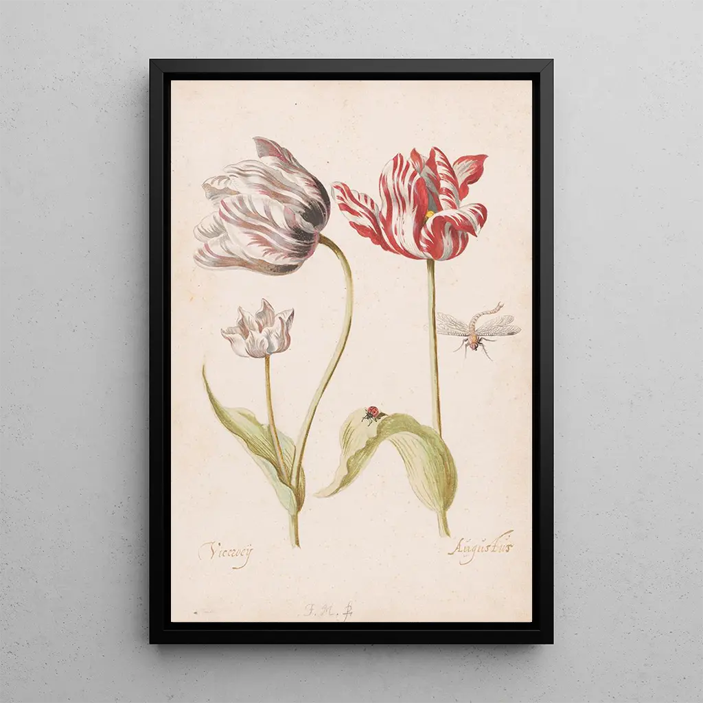 Reproduction | Deux tulipes avec insectes - Jacob Marrel