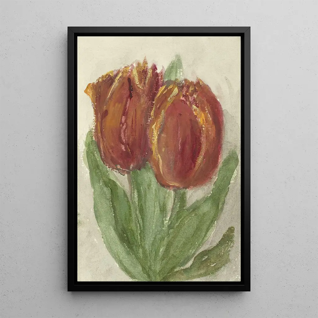 Deux tulipes rouges : une explosion de couleurs vibrantes Dans cette œuvre captivante, Sientje Mesdag van Houten nous offre une composition florale où deux tulipes rouges se dressent fièrement, illuminées par des nuances éclatantes. La technique de l'artiste, qui mêle habilement l'huile sur toile, crée une atmosphère vivante et dynamique. Les pétales délicats, aux contours précis, semblent presque palpables, tandis que le fond flou met en valeur la beauté des fleurs. Cette reproduction de 'Deux tulipes rouges' invite à une contemplation paisible, où chaque détail est une célébration de la nature. Sientje Mesdag van Houten : une pionnière du mouvement floral Sientje Mesdag van Houten, active au XIXe siècle, est souvent reconnue pour son rôle dans le mouvement artistique néerlandais, en particulier dans la représentation des fleurs. Épouse du célèbre peintre Willem Mesdag, elle a été influencée par les techniques impressionnistes qui ont émergé à cette époque. Son travail, bien que moins connu que celui de son mari, a contribué à l'évolution de la peinture florale, mettant en avant la lumière et la couleur. Les œuvres de Sientje sont aujourd'hui redécouvertes et appréciées pour leur finesse et leur sensibilité. Une acquisition décorative aux multiples atouts La reproduction de 'Deux tulipes rouges' est un choix idéal pour embellir votre intérieur, que ce soit dans un salon, un bureau ou une chambre. Sa palette de couleurs vibrantes apporte une touche de fraîcheur et de vitalité à n'importe quel espace. La qualité de la reproduction garantit une fidélité remarquable à l'œuvre originale, permettant de profiter de l'attrait esthétique de cette toile sans compromis. En choisissant cette pièce, vous ajoutez non seulement une œuvre d'art à votre décor, mais également une conversation autour de l'héritage artistique néerlandais.