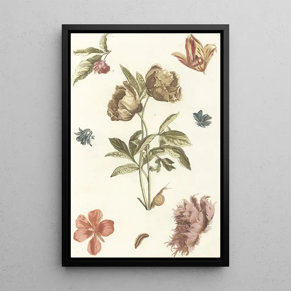 Reproduction | Différentes fleurs et une chenille - Anonyme