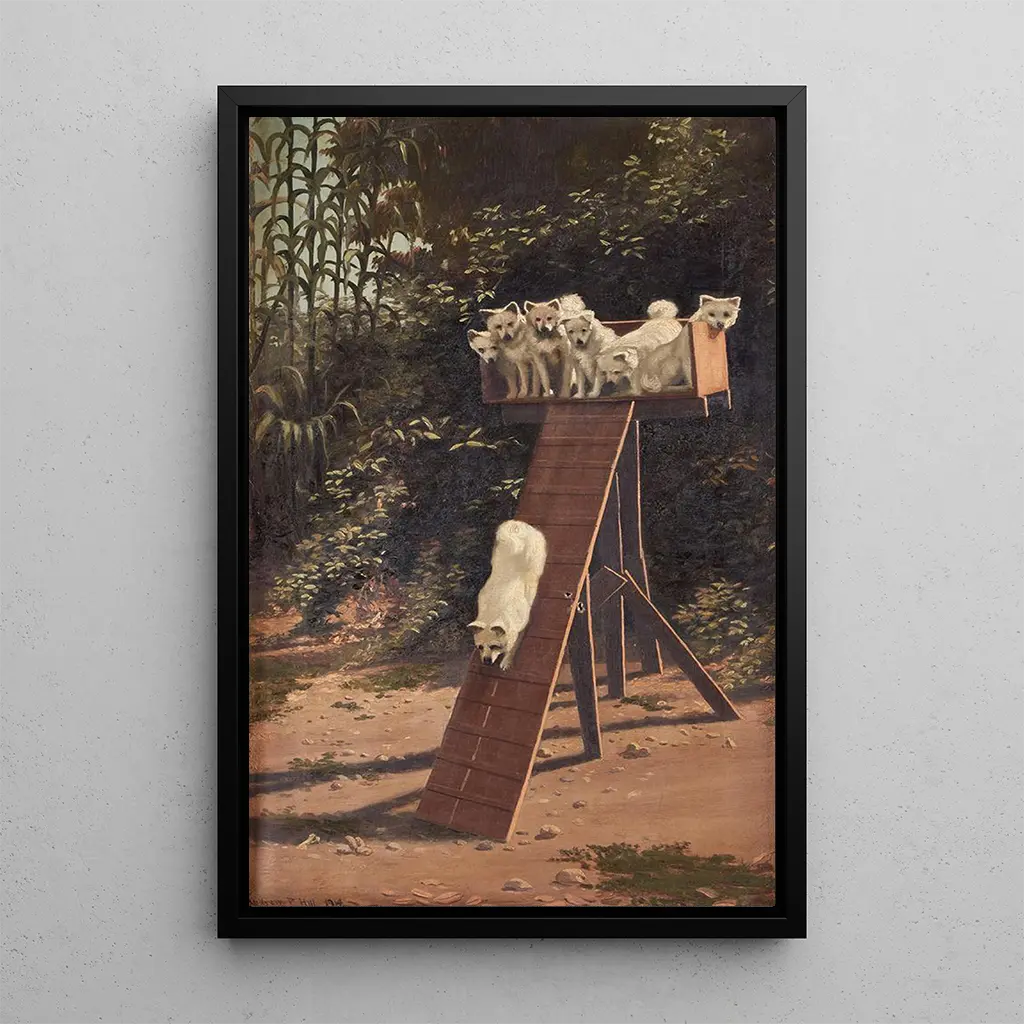 Dressage de chien : un moment de complicité entre l'homme et l'animal "Dressage de chien" d'Andrew Putnam Hill capture une scène vivante et pleine de tendresse. La toile dépeint un homme en interaction avec un chien, illustrant une connexion profonde entre les deux. Les couleurs chaudes et terreuses, associées à des touches de lumière, créent une ambiance chaleureuse et accueillante. La technique de Hill, qui mêle réalisme et impressionnisme, permet de ressentir l'énergie du moment. Cette œuvre évoque non seulement le dressage, mais aussi l'amour et la loyauté qui unissent l'homme et son compagnon à quatre pattes, offrant ainsi une vision touchante de la relation humaine-animal. Andrew Putnam Hill : un témoin de la vie quotidienne Andrew Putnam Hill, actif à la fin du XIXe siècle et au début du XXe siècle, est connu pour ses représentations de la vie quotidienne, souvent centrées sur des thèmes animaliers. Influencé par le mouvement impressionniste, Hill a su capturer des moments fugaces avec une grande sensibilité. Son travail reflète une époque où l'art se tournait vers des sujets plus accessibles et familiers, loin des grandes scènes historiques. "Dressage de chien" s'inscrit dans cette tradition, mettant en avant la beauté des interactions simples et authentiques entre les êtres vivants, tout en témoignant de l'évolution de la représentation artistique. Une acquisition décorative aux multiples atouts La reproduction de "Dressage de chien" est une pièce décorative qui saura apporter chaleur et convivialité à votre intérieur. Que ce soit dans un salon, un bureau ou une chambre, cette toile évoque des sentiments de joie et de complicité. Sa qualité d'impression permet de restituer fidèlement les nuances et les détails de l'œuvre originale, garantissant un attrait esthétique indéniable. En choisissant cette œuvre, vous ajoutez non seulement une touche artistique à votre décoration, mais vous créez également un espace où la tendresse et l'harmonie règnent, faisant de votre intérieur un lieu accueillant et inspirant.
