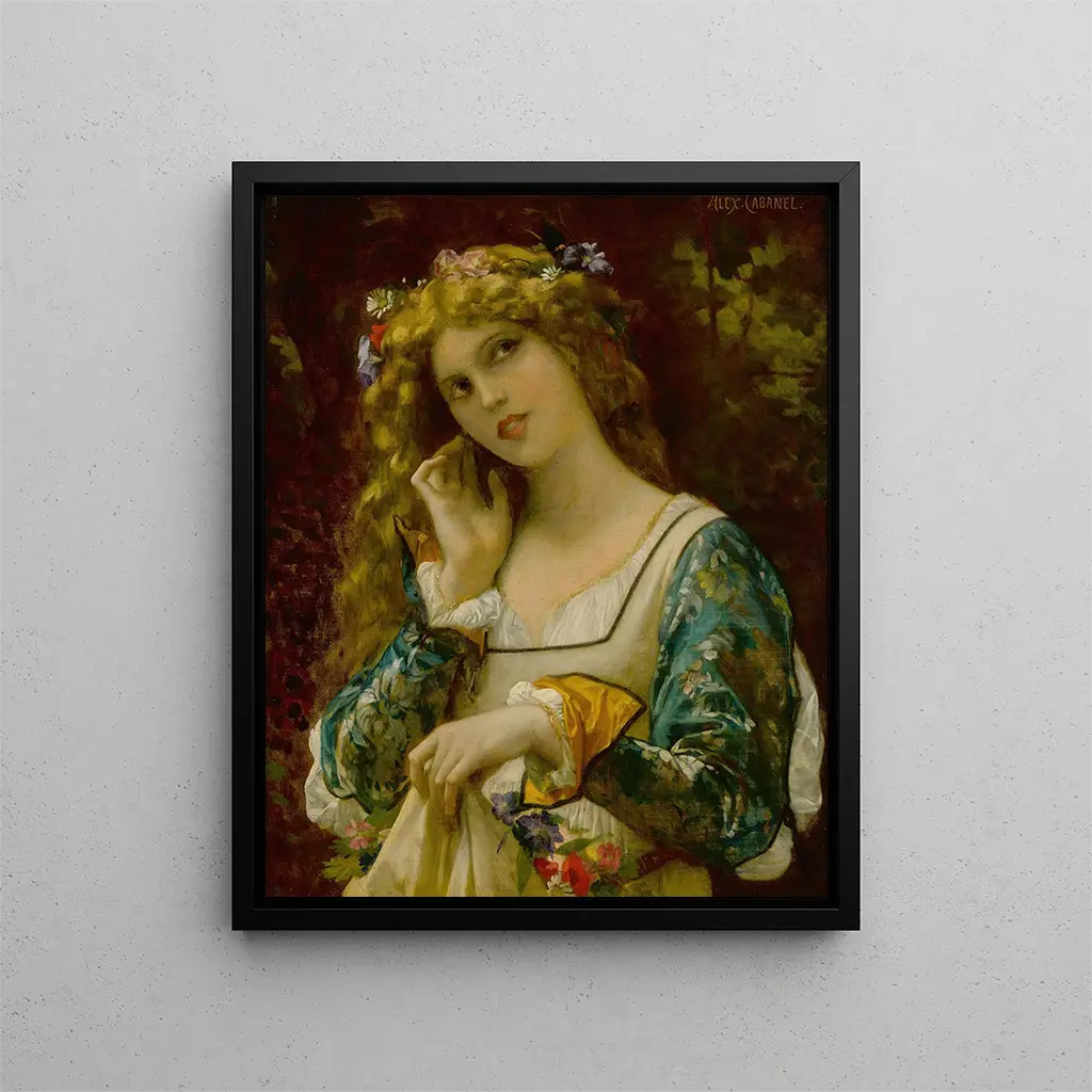 Alexandre Cabanel, né en 1823, est l'une des figures emblématiques du XIXe siècle, période marquée par des bouleversements artistiques et sociaux. Élève de l'École des beaux-arts de Paris, il a su s'imposer comme un maître du portrait et de la peinture historique. Son œuvre, riche en symbolisme et en émotion, a influencé de nombreux artistes de son temps et des générations suivantes. Cabanel a su capturer l'essence même de la beauté, tant physique que spirituelle, et son influence se fait encore sentir dans l'art contemporain. "Écoutant La Voix D'écho" incarne cette recherche de l