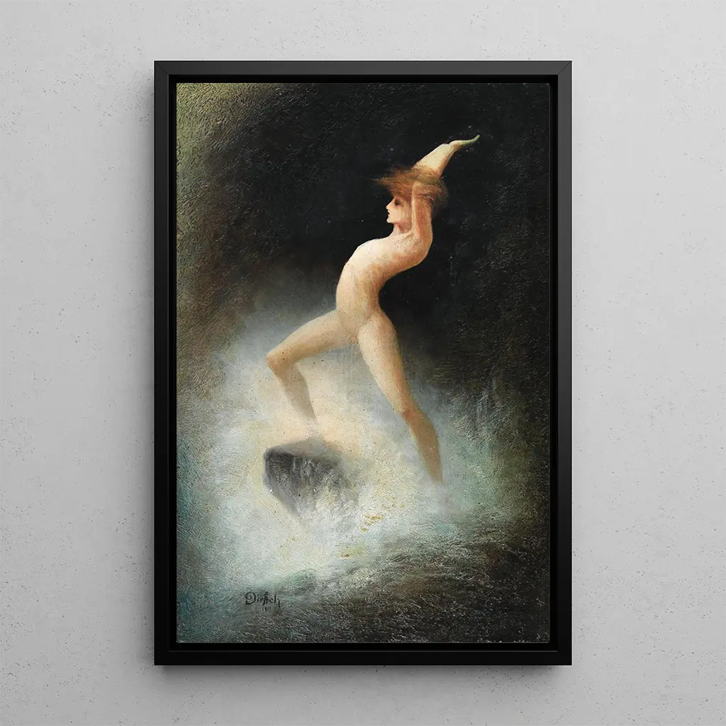 La reproduction d'"Éphèbe" de Karl Wilhelm Diefenbach incarne une vision idéalisée de la beauté masculine, où le corps humain est célébré comme une œuvre d'art à part entière. La toile, baignée de lumière, met en avant des tons chauds et des ombres délicates qui soulignent la musculature et la grâce du modèle. Diefenbach, avec son style distinctif, parvient à capturer une essence à la fois sensuelle et spirituelle, invitant le spectateur à admirer la perfection du corps humain. L'atmosphère qui se dégage de cette œuvre est à la fois apaisante et inspirante, témoignant de l'harmonie entre l'homme et la nature.