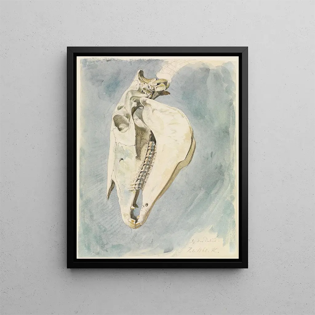 L'œuvre de Ferdinand Keller se distingue par son approche minutieuse et réaliste. Dans "Étude d'un crâne d'animal", chaque détail est soigneusement observé et restitué, révélant une maîtrise inégalée de la représentation. Les ombres et les lumières s'entrelacent pour donner vie à la structure osseuse, tandis que la texture du crâne semble presque palpable. Keller parvient à transcender la simple étude anatomique pour créer une œuvre d'art qui évoque l'émotion et la contemplation. Le choix du sujet, un crâne, loin d'être macabre, invite à une réflexion sur la beauté inhérente à la nature et à la nécessité de préserver notre environnement. Ainsi, l'œuvre s'inscrit dans une tradition artistique qui célèbre la nature tout en questionnant notre rapport à celle-ci.