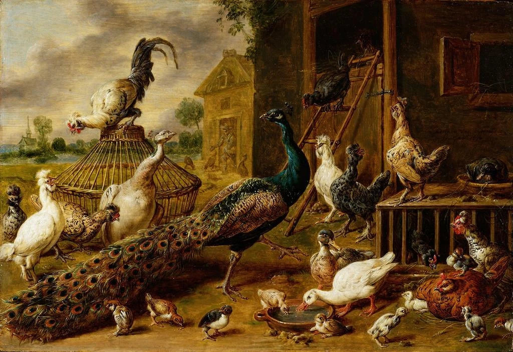 La reproduction Ferme de volaille d'Adriaen van Utrecht nous plonge dans un univers bucolique où la nature et l'homme cohabitent harmonieusement. Les couleurs chaudes et terreuses, typiques de la peinture flamande, évoquent la richesse des paysages agricoles. La technique du clair-obscur, maîtrisée par l'artiste, accentue les volumes et donne vie aux personnages et aux animaux. L'atmosphère qui se dégage de cette toile est empreinte de sérénité, invitant le spectateur à s'imprégner de la beauté simple et authentique de la vie à la ferme.