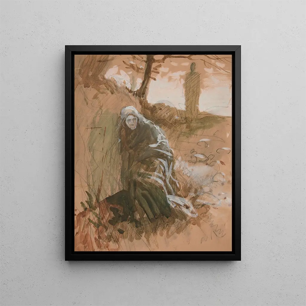 Edwin Austin Abbey, né en 1852, est un artiste dont le parcours est marqué par une passion pour les récits visuels et une profonde admiration pour la littérature. Son œuvre est souvent imprégnée d'une sensibilité romantique, où il parvient à capturer des moments fugaces de beauté et d'émotion. Abbey a su s'imposer dans le monde de l'art grâce à sa capacité à allier des thèmes classiques à une approche moderne. Son influence se fait ressentir non seulement dans la peinture, mais également dans l'illustration, où il a su donner vie à des personnages littéraires avec une intensité rare. "Figure dans les bois" témoigne de cette quête de beauté et de vérité, tout en offrant une réflexion sur la
