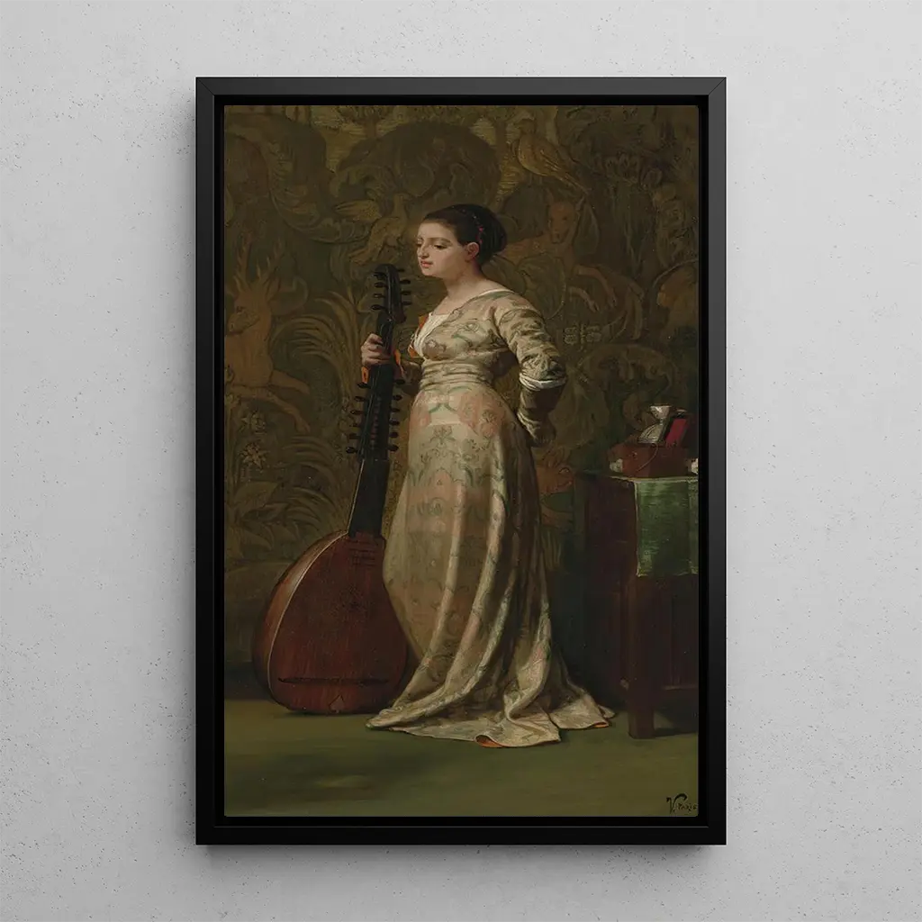 Fille avec un luth d'Elihu Vedder est une œuvre qui évoque la mélodie et la douceur à travers la représentation d'une jeune musicienne. La composition délicate, où la lumière joue sur les contours de la figure, crée une atmosphère intimiste et rêveuse. Les couleurs pastel et les détails minutieux du luth ajoutent une dimension poétique à l'ensemble. Cette toile invite à une immersion dans un monde musical, où chaque note semble vibrer à travers le regard de la jeune fille, capturant ainsi l'essence de la musique et de la beauté féminine.