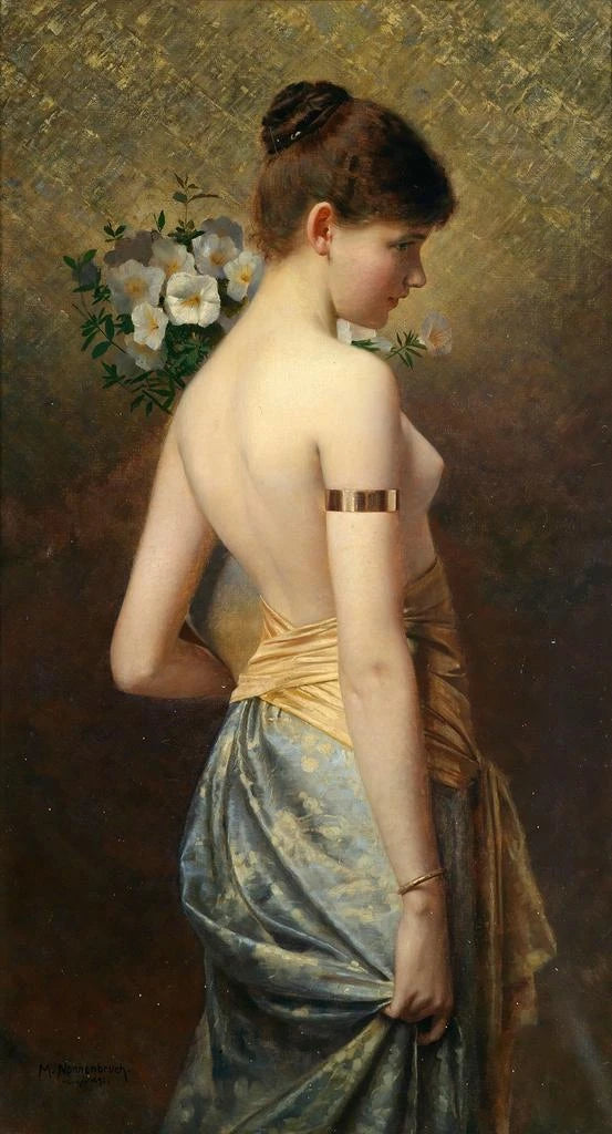 Dans cette œuvre captivante, Flore, Max Nonnenbruch nous transporte au cœur d'un jardin luxuriant où la nature s'épanouit dans toute sa splendeur. Les couleurs vibrantes des fleurs, allant des roses éclatantes aux violettes délicates, se mêlent harmonieusement pour créer une atmosphère de sérénité et de joie. La technique de Nonnenbruch, caractérisée par des coups de pinceau fluides et une attention minutieuse aux détails, donne vie à chaque pétale, chaque feuille. L'ensemble de la composition évoque une invitation à la contemplation, permettant au spectateur de s'immerger dans un univers floral enchanteur.