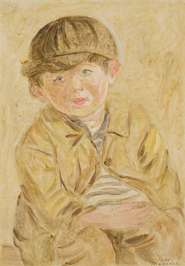 Dans cette toile, Tadeusz Makowski nous plonge dans l'univers joyeux d'un jeune garçon arborant une casquette à visière. La composition est vibrante, avec des couleurs éclatantes qui capturent l'énergie et la curiosité de l'enfance. Le visage du garçon, plein de vie et d'expression, est mis en avant par un fond subtilement flou, permettant de concentrer l'attention sur son regard malicieux. La technique de Makowski, alliant finesse et dynamisme, crée une atmosphère chaleureuse et engageante, invitant le spectateur à se remémorer ses propres souvenirs d'enfance.