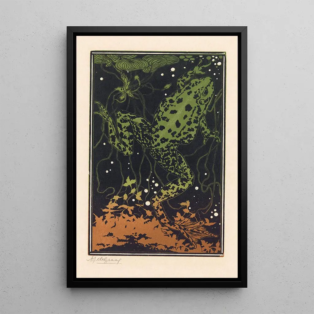 Grenouille nageant : une danse aquatique pleine de grâce Dans cette œuvre captivante, la grenouille nageante se déploie avec une élégance naturelle, évoquant la légèreté et la fluidité de son mouvement dans l'eau. Les nuances de vert et de bleu se mêlent harmonieusement, créant une atmosphère apaisante qui invite à la contemplation. La technique de peinture utilisée par Julie de Graag met en valeur les détails délicats de la peau de l'animal, tout en capturant la lumière qui se reflète à la surface de l'eau. Cette reproduction du tableau "Grenouille nageant" transporte le spectateur dans un univers aquatique où la beauté de la nature s'exprime avec simplicité et poésie. Julie de Graag : une pionnière de l'art animalier Julie de Graag, artiste néerlandaise du début du XXe siècle, est reconnue pour sa capacité à capturer la vie sauvage avec une précision remarquable. Influencée par le mouvement impressionniste, elle a su allier technique réaliste et sensibilité artistique, plaçant la nature au cœur de son œuvre. Son travail se distingue par une attention particulière aux détails et une palette de couleurs vibrantes qui rendent hommage à la beauté du monde animal. En explorant la faune de son époque, de Graag a contribué à l'émergence d'une nouvelle appréciation pour l'art animalier, faisant d'elle une figure importante de son temps. Une acquisition décorative aux multiples atouts La reproduction du tableau "Grenouille nageant" est une pièce décorative idéale pour apporter une touche de nature à votre intérieur. Que ce soit dans un salon, un bureau ou une chambre, cette toile attire l'œil et suscite des conversations. Sa qualité d'impression garantit une fidélité aux couleurs et aux détails de l'œuvre originale, tout en offrant un attrait esthétique indéniable. En intégrant cette reproduction dans votre décoration, vous créez un espace apaisant et inspirant, où la beauté de la nature s'invite au quotidien.