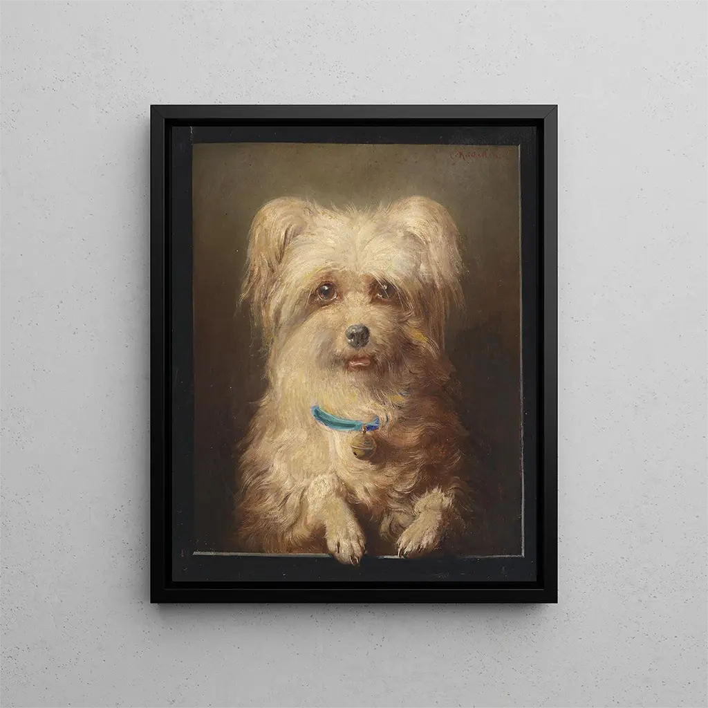 Le style de Carl Reichert se distingue par une minutie remarquable et une sensibilité palpable. Dans "Griffon nain", l'artiste utilise une palette de couleurs chaudes et naturelles qui évoque la douceur et la proximité. Les jeux de lumière sur le pelage du chien créent une texture presque tactile, tandis que le fond flou met en valeur le sujet principal. Cette approche réaliste, presque photographique, révèle la maîtrise technique de Reichert, qui parvient à capturer non seulement l'apparence physique de l'animal, mais aussi son caractère. Le regard vif et intelligent du Griffon nain, rendu avec une précision saisissante, semble interroger le spectateur, établissant ainsi un dialogue silencieux entre l'œuvre et celui qui l'observe. Cette capacité à transmettre des émotions à travers la peinture est ce qui confère à l'œuvre une singularité indéniable.