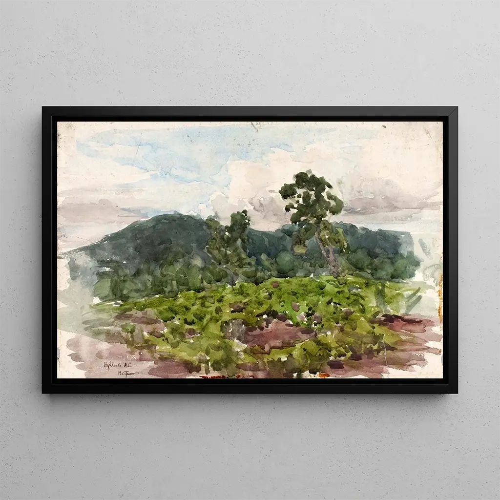 Henry Ossawa Tanner, né en 1859, est considéré comme l'un des premiers artistes afro-américains à atteindre une reconnaissance internationale. Influencé par les grands maîtres européens et les traditions américaines, Tanner a su développer un style unique, mêlant réalisme et spiritualité. Son œuvre s'inscrit dans le mouvement impressionniste, mais avec une sensibilité propre à son expérience de vie. À une époque où les artistes afro-américains étaient souvent marginalisés, Tanner a ouvert la voie à de nombreux créateurs, en prouvant que l'art transcende les barrières raciales et culturelles. Ses paysages, comme "Highlands, Caroline du Nord", témoignent de son profond respect pour la nature et de son engagement envers l'humanité.