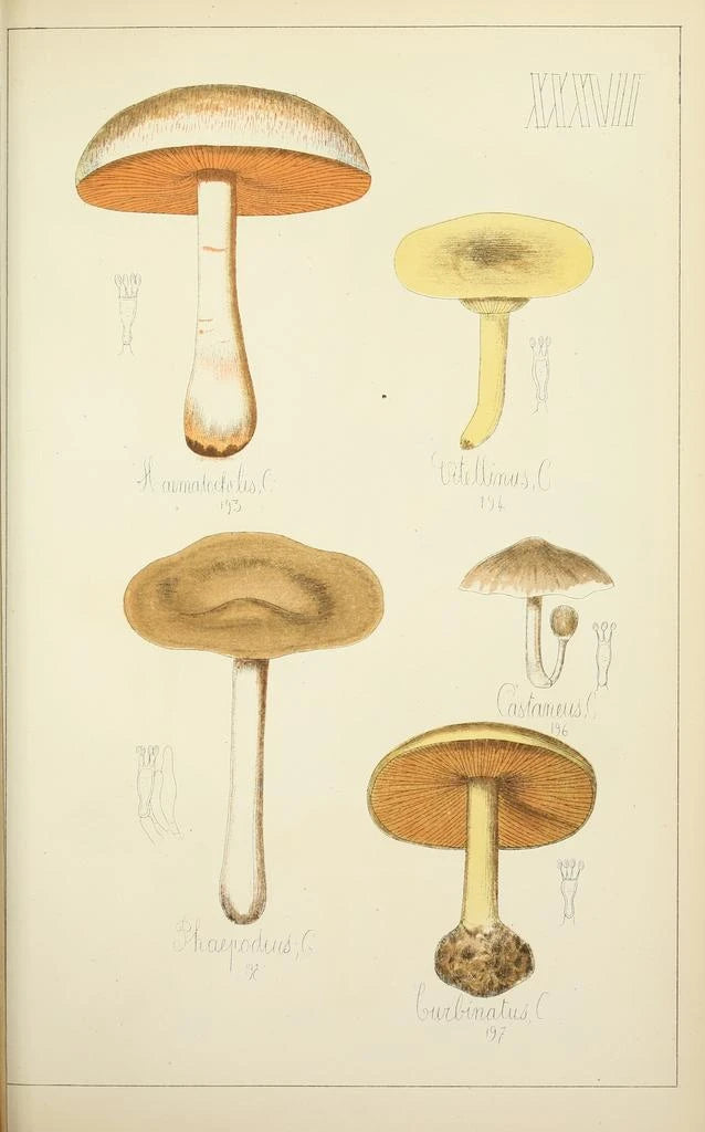Histoire naturelle des champignons Pl37 : une exploration des formes et des couleurs
