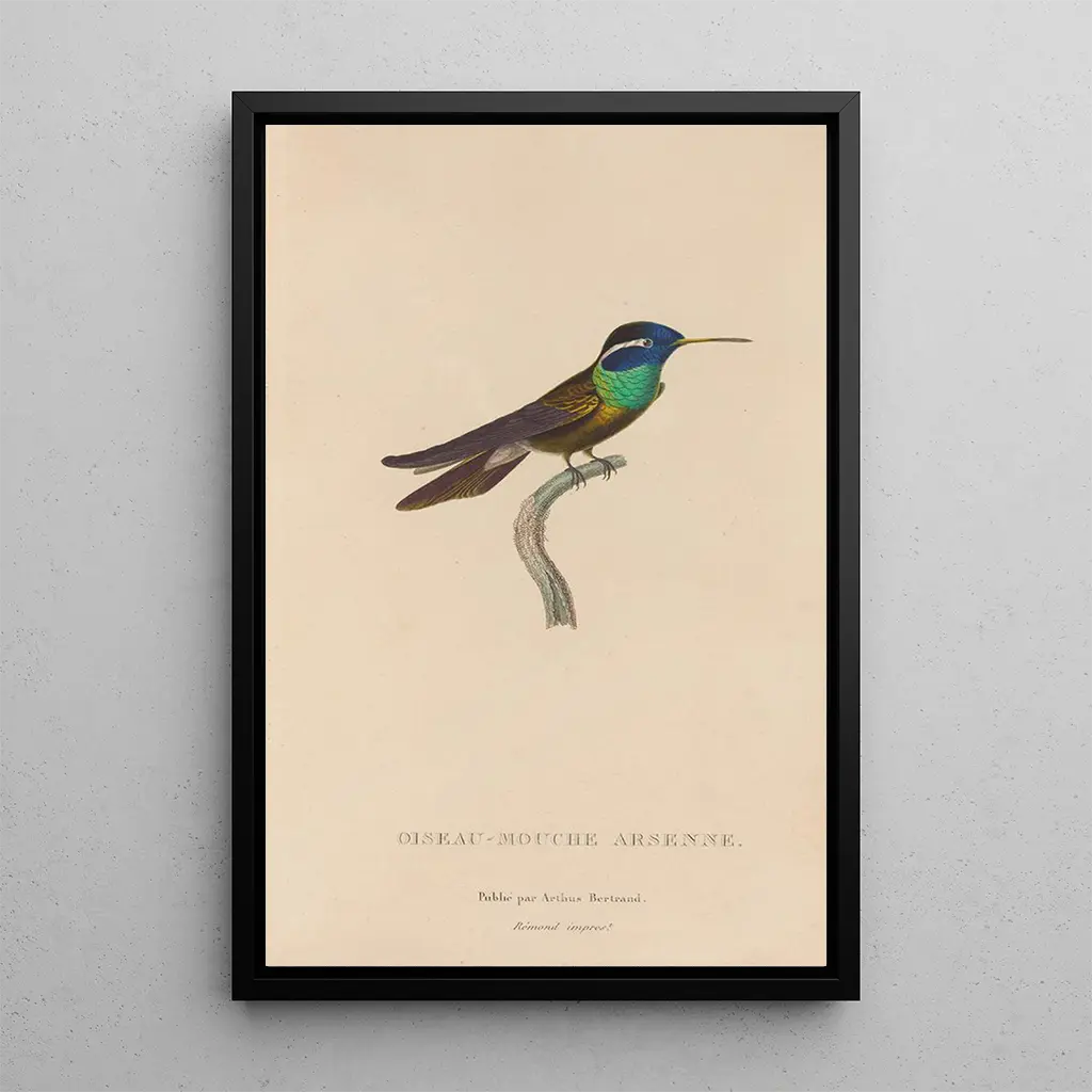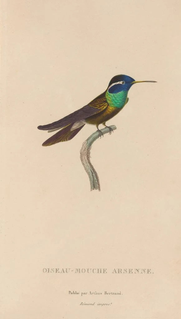 René Primevère Lesson, actif au XIXe siècle, est reconnu pour son approche novatrice de l’illustration ornithologique. Sa formation scientifique, combinée à son talent artistique, lui a permis de produire des œuvres qui transcendent le simple registre de l’illustration. Influencé par les explorations naturalistes de son temps, il a su capturer la beauté des oiseaux-mouches avec une précision remarquable. Ses œuvres, dont Histoire naturelle des oiseaux-mouches Pl09, sont devenues des références tant pour les amateurs d’art que pour les scientifiques, témoignant de l’interaction entre l’art et la nature.