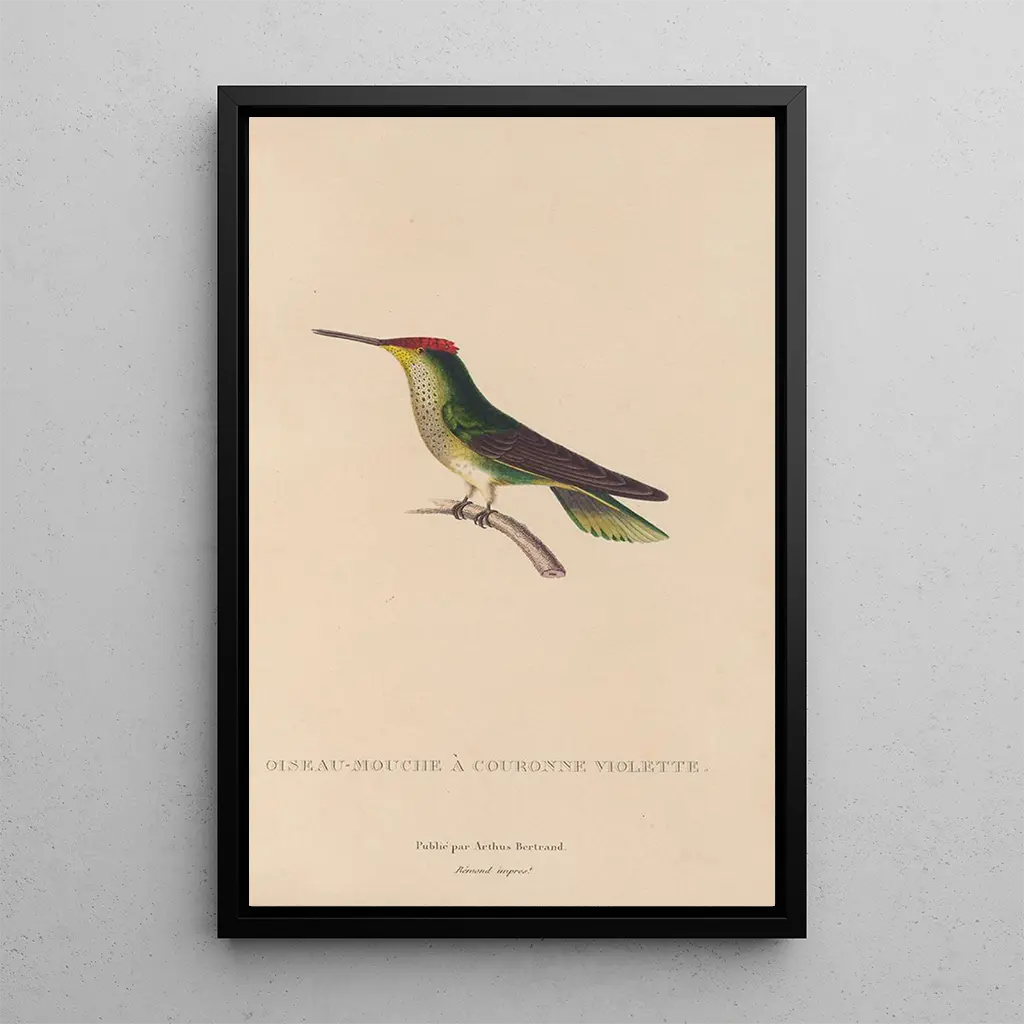 René Primevère Lesson, naturaliste et illustrateur du XIXe siècle, a joué un rôle essentiel dans l'étude des oiseaux, notamment ceux des régions tropicales. Influencé par les explorations scientifiques de son époque, il a su allier rigueur scientifique et sensibilité artistique. Ses œuvres, dont cette reproduction Histoire naturelle des oiseaux-mouches Pl14, témoignent d'une époque où la science et l'art se rejoignaient pour célébrer la biodiversité. Lesson a contribué à enrichir les connaissances sur les espèces aviaires, tout en laissant un héritage visuel inestimable qui continue d'inspirer les amateurs d'art et de nature.