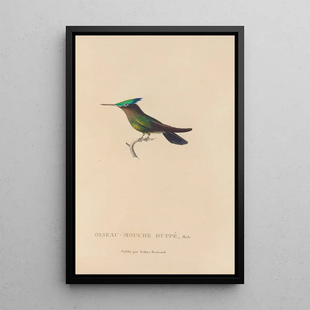 Histoire naturelle des oiseaux-mouches Pl31 : un ballet de couleurs et de légèreté L'œuvre "Histoire naturelle des oiseaux-mouches Pl31" de René Primevère Lesson est une véritable ode à la beauté aviaire. Cette reproduction illustre avec une précision remarquable un oiseau-mouche en plein vol, ses ailes délicates vibrantes de couleurs éclatantes. Les nuances de vert, de bleu et de jaune se mêlent harmonieusement, créant une atmosphère légère et aérienne. La technique de la lithographie permet de rendre chaque détail avec finesse, des plumes aux reflets irisés, transportant le spectateur dans un monde où la nature et l'art se rencontrent. Cette toile invite à la contemplation et à l'émerveillement face à la richesse de la biodiversité. René Primevère Lesson : un pionnier de l'ornithologie artistique René Primevère Lesson, naturaliste et ornithologue du XIXe siècle, a marqué son époque par ses contributions à l'étude des oiseaux. Élevé dans un milieu scientifique, il a été influencé par les découvertes de son temps et a su allier rigueur scientifique et sensibilité artistique. Ses œuvres, dont "Histoire naturelle des oiseaux-mouches Pl31", témoignent de son souci du détail et de son désir de capturer la beauté de la nature. À travers ses illustrations, il a non seulement documenté des espèces rares, mais a également sensibilisé le public à la préservation de la faune. Son héritage perdure, inspirant encore aujourd'hui les passionnés d'ornithologie et d'art. Une acquisition décorative aux multiples atouts La reproduction de "Histoire naturelle des oiseaux-mouches Pl31" s'avère être un choix décoratif idéal pour divers espaces tels que le salon, le bureau ou la chambre. Son attrait esthétique et sa qualité d'impression en font une pièce maîtresse qui attire le regard et suscite des conversations. La fidélité des couleurs et des détails à l'œuvre originale garantit une immersion totale dans l'univers de la nature. En ajoutant cette toile à votre décoration, vous apportez une touche d'élégance et de fraîcheur, tout en célébrant la beauté des oiseaux-mouches, symboles de légèreté et de grâce.