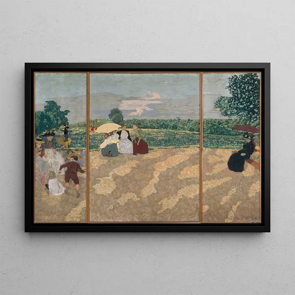 Jardins publics : un tableau de la vie quotidienne Jardins publics d'Édouard Vuillard est une œuvre qui capture la beauté des moments simples de la vie. Dans cette toile, des personnages évoluent dans un cadre verdoyant, entourés de fleurs et de lumière. Les couleurs vives et les touches de pinceau expressives évoquent une atmosphère joyeuse et vivante, où la nature et l'humanité se rencontrent harmonieusement. Vuillard, membre du mouvement nabi, utilise des techniques de peinture qui créent une texture riche, rendant chaque élément de la composition vivant et engageant. Ce tableau est une célébration de la vie quotidienne, invitant le spectateur à apprécier la beauté des instants partagés. Édouard Vuillard : un maître du mouvement nabi Édouard Vuillard, actif à la fin du XIXe et au début du XXe siècle, est l'un des principaux représentants du mouvement nabi, qui prônait une approche plus personnelle et symbolique de l'art. Influencé par les impressionnistes et les arts décoratifs, Vuillard a su développer un style unique, caractérisé par des compositions intimes et des couleurs éclatantes. Ses œuvres, souvent centrées sur la vie domestique et les scènes de la vie quotidienne, révèlent une sensibilité particulière à l'environnement et aux interactions humaines. Jardins publics est un exemple parfait de son talent pour capturer l'essence des moments fugaces. Une acquisition décorative aux multiples atouts La reproduction de Jardins publics est une pièce décorative qui saura embellir n'importe quel espace, qu'il s'agisse d'un salon, d'un bureau ou d'une chambre. Sa qualité d'impression et sa fidélité aux nuances originales en font une œuvre d'art accessible et attrayante. En ajoutant ce tableau à votre décoration, vous apportez une touche de fraîcheur et de vitalité, tout en créant un environnement inspirant. L'attrait esthétique de cette reproduction enrichira votre intérieur, tout en offrant une fenêtre sur la beauté de la vie quotidienne à travers le regard d'un grand maître.