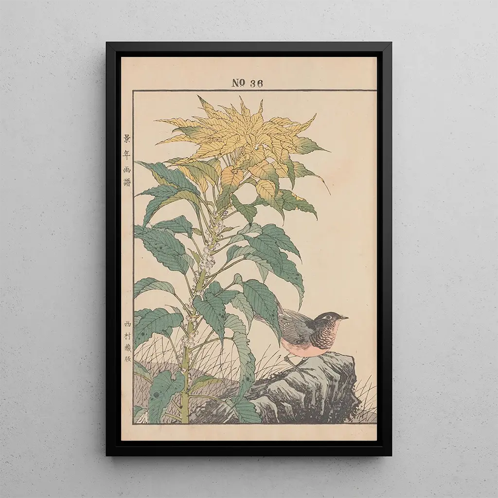 Keinen kach gafu Pl039 : une célébration de la nature japonaise La reproduction de Keinen kach gafu Pl039 nous plonge dans un univers où la nature est mise en lumière avec une délicatesse inouïe. Les couleurs douces et les détails minutieux des fleurs et des oiseaux créent une atmosphère apaisante, presque méditative. La technique de l'estampe sur papier, typique de l'époque Edo, permet à l'artiste de capturer la beauté éphémère de la flore et de la faune japonaises. Chaque élément semble vibrer sous le regard, invitant le spectateur à une contemplation silencieuse et respectueuse de la nature. Imao Keinen : un maître de l'estampe japonaise Imao Keinen, actif à la fin du XIXe siècle, est reconnu comme l'un des plus grands artistes d'estampes japonaises de son temps. Influencé par la tradition ukiyo-e, il a su intégrer des éléments de modernité tout en préservant l'essence de l'art traditionnel. Ses œuvres, souvent centrées sur la nature, témoignent d'une sensibilité unique et d'une maîtrise technique impressionnante. Keinen a joué un rôle essentiel dans la diffusion de l'art japonais à l'étranger, contribuant ainsi à l'appréciation mondiale de l'esthétique nippone. Une acquisition décorative aux multiples atouts La reproduction de Keinen kach gafu Pl039 est une pièce décorative qui s'intègre harmonieusement dans divers espaces, que ce soit un salon, un bureau ou une chambre. Sa qualité d'impression et sa fidélité aux couleurs originales en font un choix idéal pour ceux qui souhaitent ajouter une touche d'élégance asiatique à leur intérieur. L'attrait esthétique de cette toile ne manquera pas de susciter l'admiration de vos invités, tout en apportant une atmosphère sereine et inspirante à votre décor.