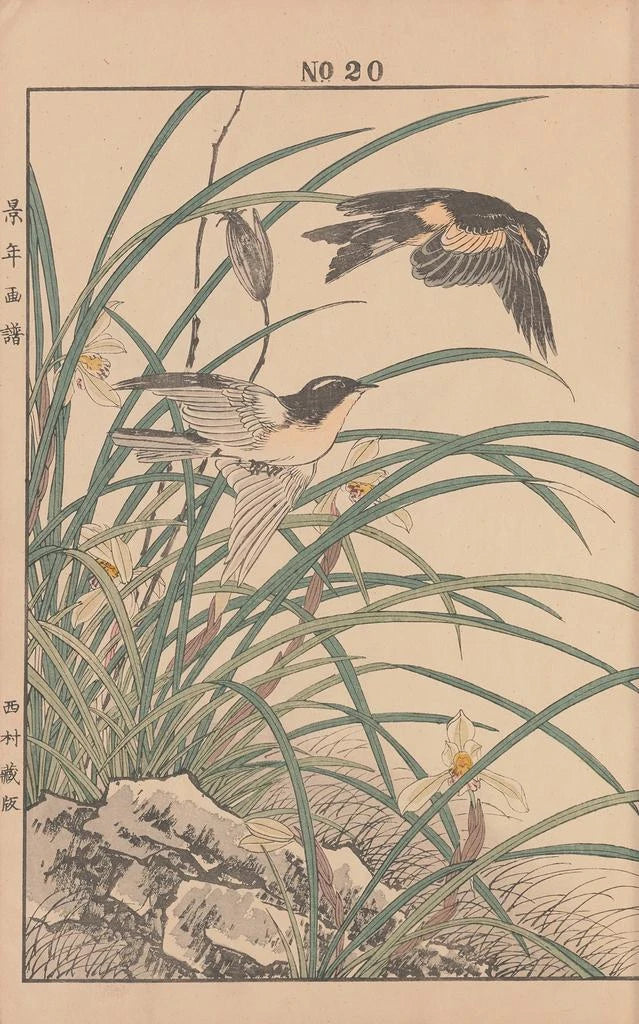 La reproduction Keinen kach gafu Pl067 d'Imao Keinen nous transporte dans un univers où la nature s'épanouit avec grâce. Cette œuvre, riche en détails et en couleurs, évoque des paysages enchanteurs, où chaque élément est soigneusement représenté. Les nuances délicates de vert et de bleu créent une ambiance sereine, tandis que les motifs floraux ajoutent une touche de poésie. La technique de l'estampe, caractéristique de l'art japonais, permet de ressentir la légèreté et la fluidité des formes, faisant de cette toile un véritable chef-d'œuvre de contemplation.