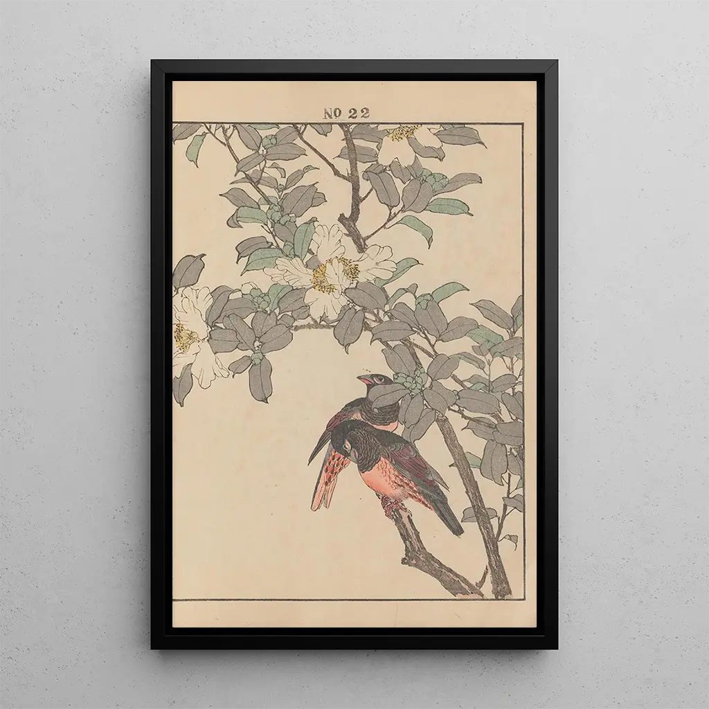 Keinen kach gafu Pl146 : une danse florale envoûtante La reproduction de Keinen kach gafu Pl146 nous transporte dans un jardin luxuriant où les fleurs semblent danser sous une brise légère. Les couleurs vibrantes, allant des rouges profonds aux jaunes éclatants, créent un contraste saisissant qui attire immédiatement le regard. La technique d'estampe, raffinée et précise, permet de rendre chaque nuance et chaque ombre avec une finesse remarquable. Cette œuvre évoque une atmosphère de joie et de vitalité, célébrant la beauté éphémère de la nature à travers un regard artistique unique. Imao Keinen : un pionnier de l'estampe moderne Imao Keinen est une figure emblématique de l'art japonais, ayant marqué la fin de l'ère Edo et le début de l'ère Meiji. Son travail, ancré dans la tradition ukiyo-e, témoigne d'une époque où l'art japonais s'ouvrait aux influences occidentales. Keinen a su allier tradition et innovation, s'inspirant des paysages et des fleurs pour créer des œuvres qui transcendent le temps. Son héritage artistique est d'une grande importance, car il a contribué à faire connaître l'estampe japonaise au-delà des frontières du Japon, influençant ainsi de nombreux artistes. Une acquisition décorative aux multiples atouts La reproduction de Keinen kach gafu Pl146 est un choix parfait pour embellir votre intérieur, que ce soit dans un salon, un bureau ou une chambre. Sa palette de couleurs éclatantes apporte une énergie vivifiante à n'importe quel espace, tout en offrant une touche d'élégance. La qualité de la reproduction garantit une fidélité exceptionnelle aux détails de l'œuvre originale, permettant d'apprécier pleinement le talent de Keinen. Avec son attrait esthétique indéniable, cette toile devient un élément central de votre décoration, captivant l'attention et suscitant l'admiration.