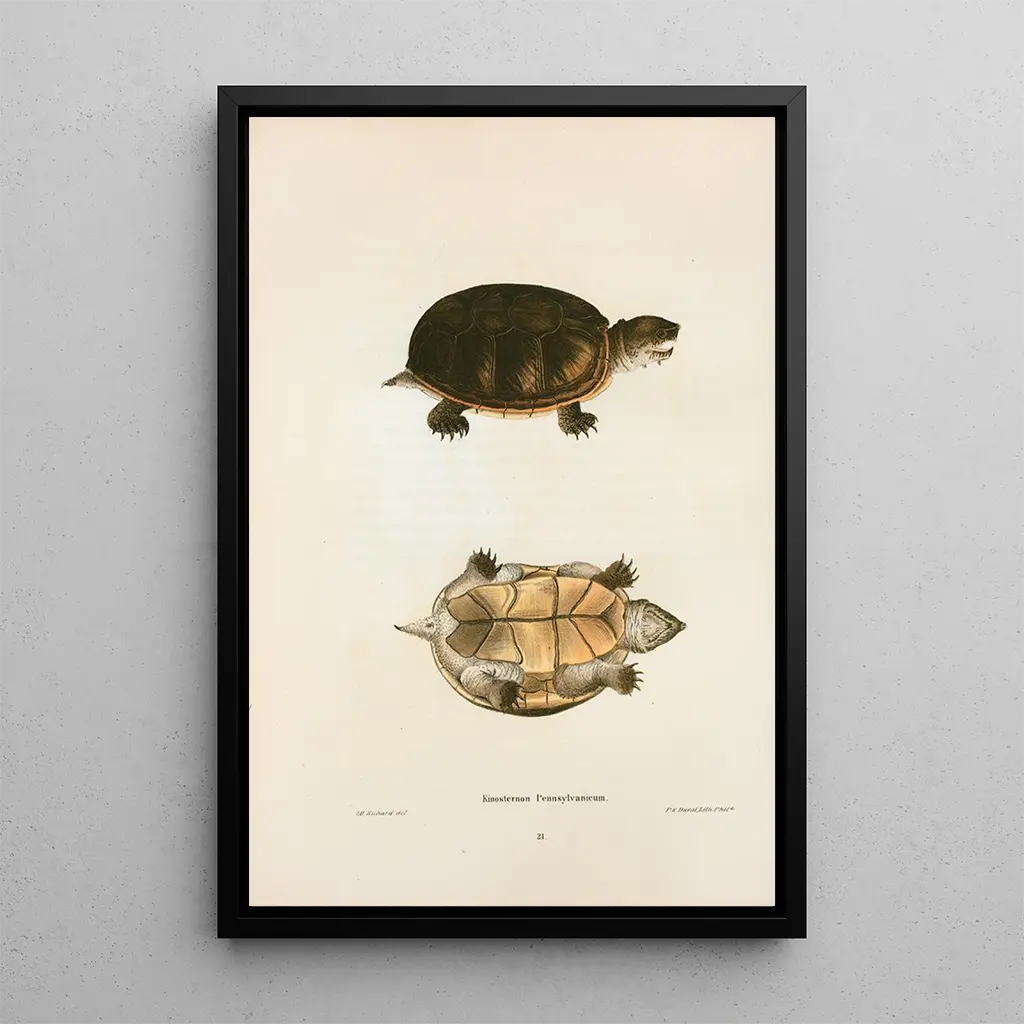 La reproduction du tableau Kinosternon de Pennsylvanie est une pièce décorative qui saura enrichir n'importe quel espace, que ce soit un salon, un bureau ou une chambre. Sa qualité d'impression et sa fidélité aux couleurs originales en font un choix idéal pour les amateurs de nature et de biodiversité. En intégrant ce tableau dans votre décoration, vous apportez une touche d'élégance et de sérénité, tout en célébrant la beauté du monde aquatique. Cette toile, avec son attrait esthétique indéniable, constitue un excellent moyen de sensibiliser à la préservation des espèces et à l'importance de notre environnement naturel.