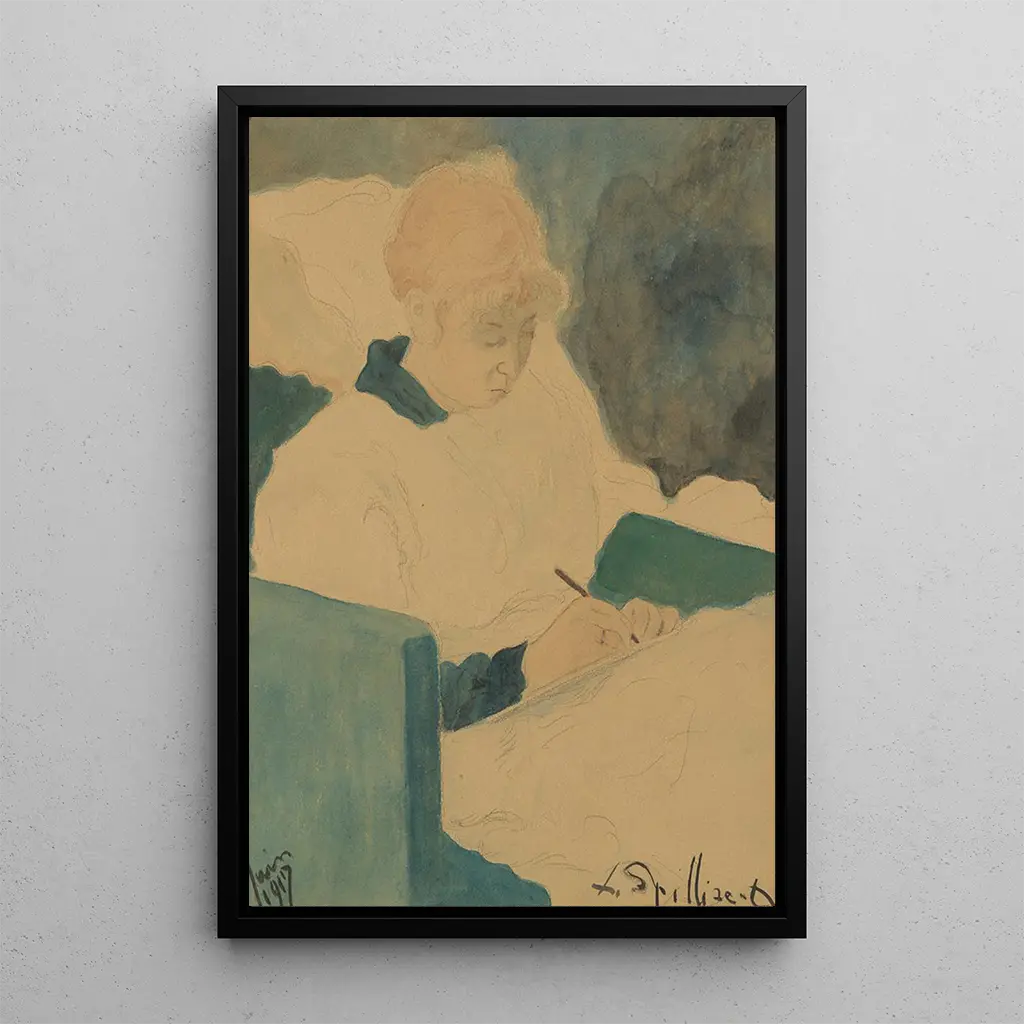 La femme écrivant une lettre, œuvre délicate de Léon Spilliaert, capture un moment de vie empreint de douceur et de réflexion. La composition met en avant une figure féminine, plongée dans ses pensées, entourée d'une atmosphère intimiste. Les couleurs douces et les jeux d'ombre et de lumière créent une ambiance chaleureuse, invitant le spectateur à partager ce moment de solitude et de concentration. La posture de la femme, à la fois pensive et sereine, évoque une introspection profonde, comme si chaque mot écrit était une extension de son âme.