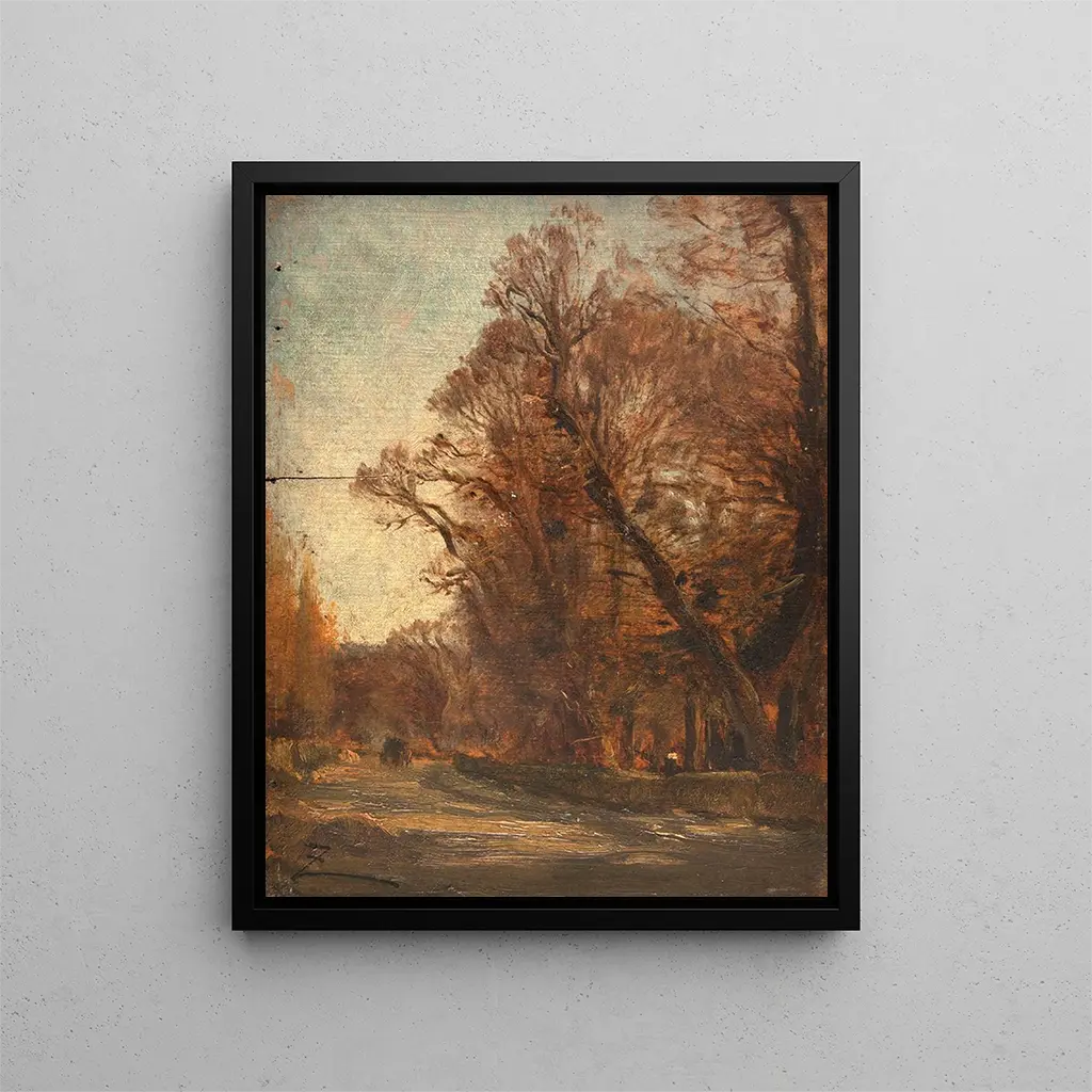 Félix Ziem, maître du paysage, réussit à capturer l'essence même de la nature avec une délicatesse rare. Dans "La route", le spectateur est immergé dans un monde où la lumière joue un rôle prépondérant, illuminant les nuances des arbres, des ciels et des chemins. Le choix des couleurs, allant des verts profonds aux bleus apaisants, crée une harmonie visuelle qui attire l'œil et apaise l'âme. La composition est savamment orchestrée, mêlant éléments naturels et perspectives pour offrir une profondeur saisissante. Ziem, en véritable alchimiste, transforme la toile en une fenêtre ouverte sur un paysage rêvé, où chaque détail, du feuillage aux nuages, semble palpiter sous l'effet d'une brise légère. Cette œuvre se distingue par sa capacité à évoquer des émotions, à susciter le souvenir de promenades passées ou à faire naître le désir d'aventures futures.