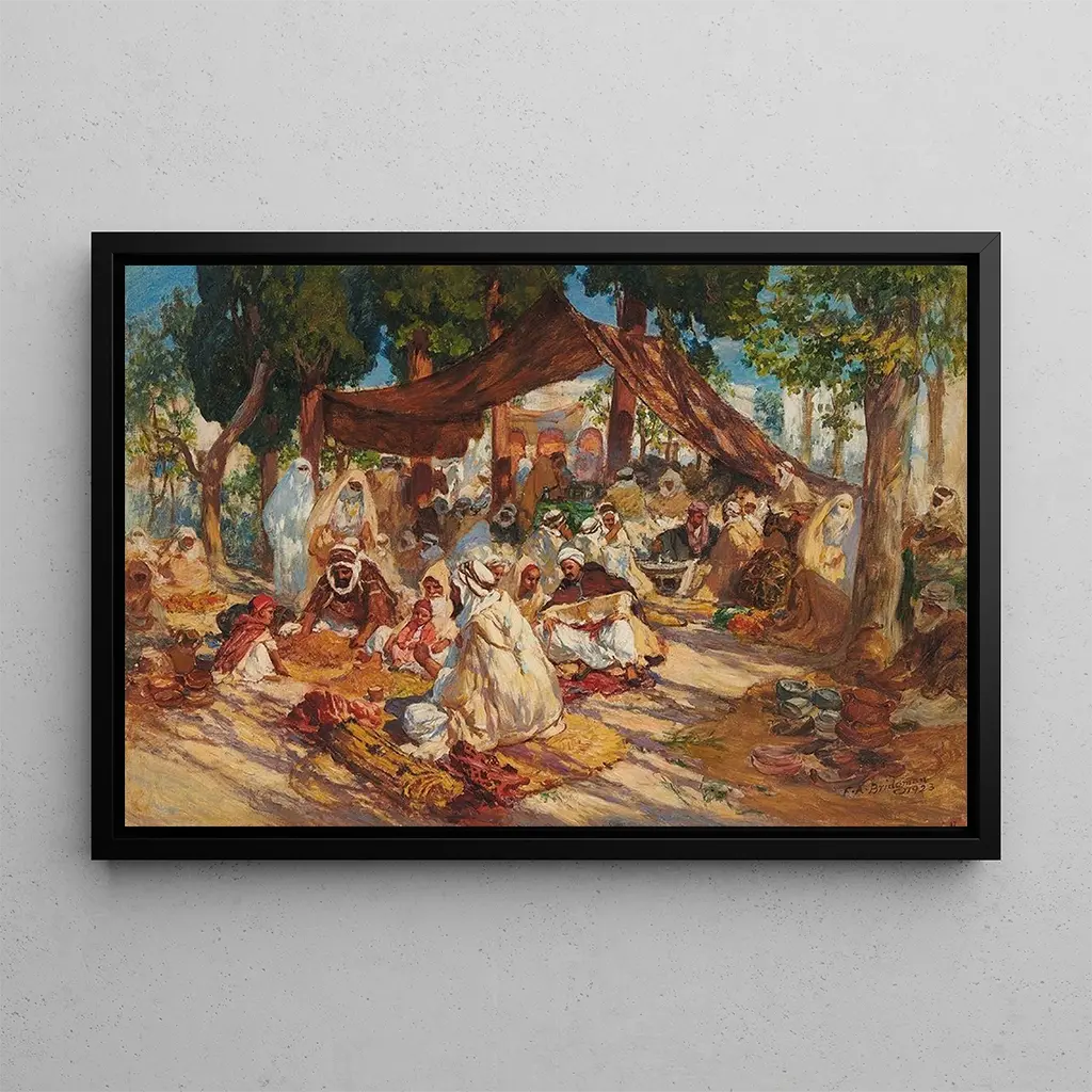 Le Marché : une scène vibrante de la vie quotidienne Le tableau Le Marché de Frederick Arthur Bridgman nous plonge dans une atmosphère vivante et colorée, où les personnages s'animent au cœur d'un marché animé. Les teintes chaudes et terreuses, mêlées à des touches de lumière, évoquent une sensation de chaleur et de convivialité. La technique de l'artiste, qui utilise des coups de pinceau expressifs, donne vie aux détails des vêtements et des visages, créant une dynamique palpable. Chaque élément de la composition, des étals de fruits aux interactions entre les personnages, contribue à une narration visuelle riche, invitant le spectateur à s'impliquer dans cette scène de la vie quotidienne. Frederick Arthur Bridgman : un maître du réalisme oriental Frederick Arthur Bridgman, peintre américain du XIXe siècle, est reconnu pour ses œuvres qui capturent la beauté et l'exotisme des cultures orientales. Influencé par ses voyages en Afrique du Nord et au Moyen-Orient, il a su intégrer des éléments de ces régions dans son travail, tout en restant ancré dans le style réaliste de son époque. Bridgman a été un pionnier dans la représentation de la vie quotidienne dans des contextes exotiques, ce qui lui a permis de se démarquer parmi ses contemporains. Son héritage artistique perdure, témoignant de l'importance de l'Orient dans l'imaginaire occidental. Une acquisition décorative aux multiples atouts La reproduction du tableau Le Marché est une pièce décorative qui saura enrichir n'importe quel espace, qu'il s'agisse d'un salon, d'un bureau ou d'une chambre. Sa qualité d'impression et sa fidélité aux couleurs originales en font un choix idéal pour ceux qui souhaitent apporter une touche d'élégance et de chaleur à leur intérieur. L'attrait esthétique de cette toile attire le regard et suscite la curiosité, tout en offrant une fenêtre sur une époque et un lieu fascinants. En intégrant cette œuvre dans votre décoration, vous faites le choix d'une ambiance conviviale et inspirante.