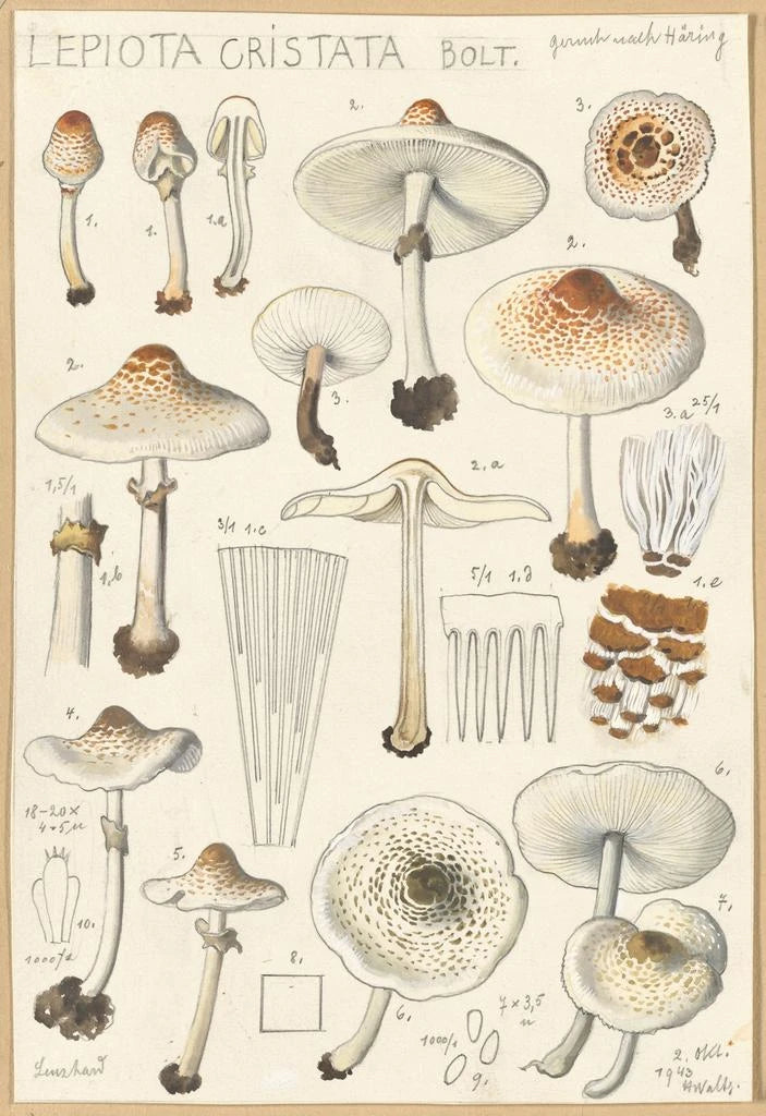 Hans Baldung, figure marquante de la Renaissance allemande, a su s'imposer grâce à son style unique et à sa capacité à explorer des thèmes variés. Actif au début du XVIe siècle, il a été influencé par les grands maîtres de son temps, tout en développant une approche personnelle et innovante. Baldung est reconnu pour ses œuvres qui mêlent éléments mythologiques et représentations de la nature, comme en témoigne sa toile de Lepiota cristata. Cette œuvre illustre son intérêt pour la botanique et son désir de capturer la beauté du monde naturel, une préoccupation qui résonne encore aujourd'hui dans l'art contemporain.