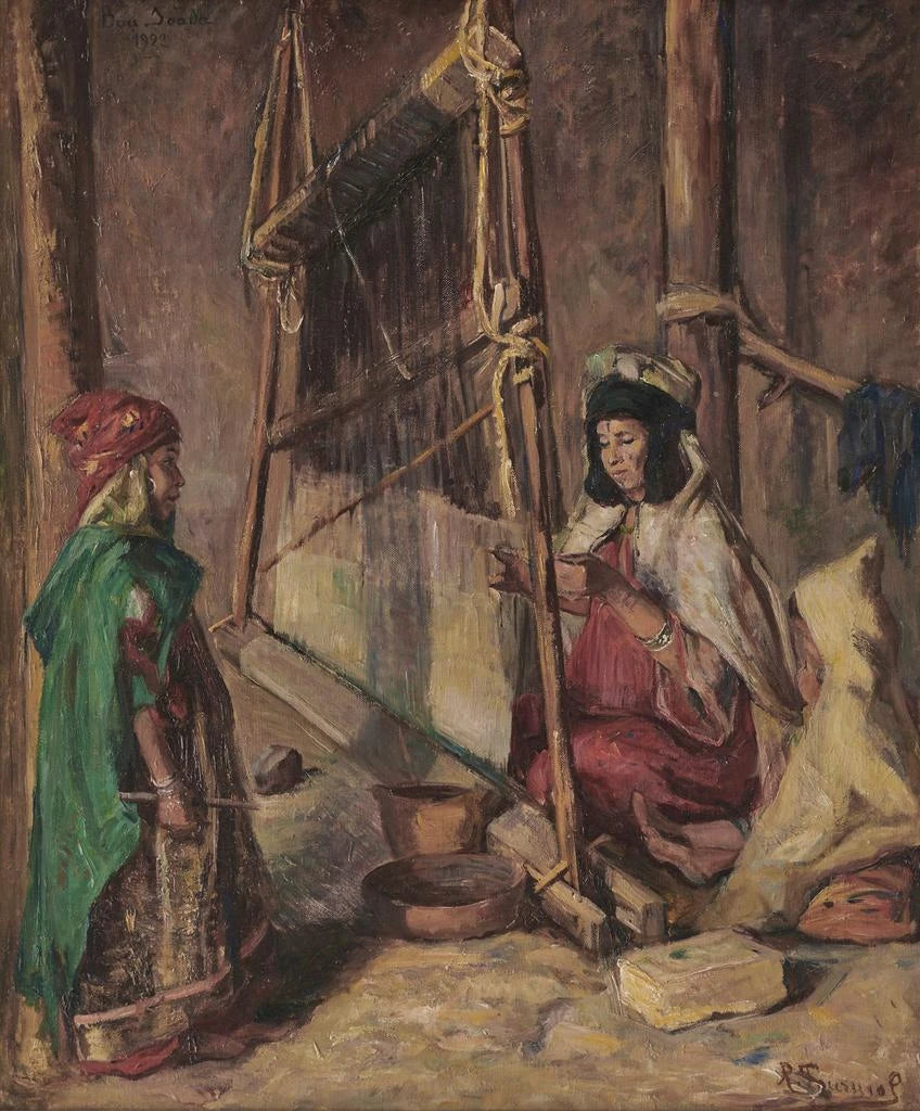 René Tourniol, artiste français du XXe siècle, est connu pour ses représentations de la vie quotidienne et des scènes de genre. Dans 'Les fileuses, Bou Sada', il capture un moment de travail artisanal, mettant en lumière la beauté du processus créatif et l'importance de la tradition. Les figures féminines, engagées dans leur tâche, sont représentées avec une sensibilité qui souligne leur force et leur détermination. Tourniol utilise une palette de couleurs chaudes pour créer une atmosphère intime et accueillante, évoquant le lien profond entre l'homme et son environnement. Cette œuvre, tout en étant ancrée dans une réalité sociale, trouve une résonance dans des intérieurs modernes qui valorisent l'authenticité et le savoir-faire. Plongez dans cet univers riche en histoire et explorez sa reproduction sur Artem Legrand.