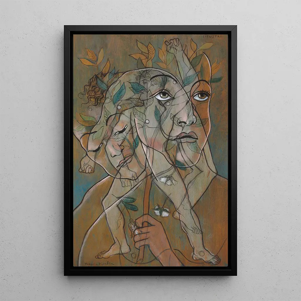 La reproduction de Ligustri de Francis Picabia évoque une fusion harmonieuse entre abstraction et éléments naturels. Les formes organiques se mêlent à des lignes géométriques, créant une atmosphère à la fois dynamique et apaisante. Les couleurs, allant des verts profonds aux touches de jaune éclatant, insufflent une vitalité à l'œuvre. La technique de Picabia, qui mêle peinture à l'huile et influences cubistes, offre une profondeur visuelle captivante, invitant le spectateur à explorer chaque détail. Cette toile, à la fois complexe et accessible, incarne une réflexion sur la beauté de la nature à travers le prisme de l'art moderne.