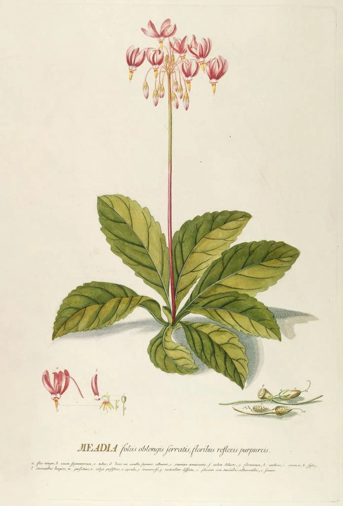 Georg Dionysius Ehret, actif au XVIIIe siècle, est reconnu comme l'un des plus grands illustrateurs botaniques de son époque. Formé en Allemagne, il a été influencé par les courants scientifiques et artistiques de son temps, notamment le mouvement de la botanique systématique. Ses œuvres, comme Meadia, sont le fruit d'une observation minutieuse et d'une passion pour la nature. Ehret a collaboré avec des botanistes renommés, contribuant à la diffusion des connaissances sur la flore. Son style unique allie rigueur scientifique et sensibilité artistique, faisant de lui une figure emblématique de l'illustration botanique.