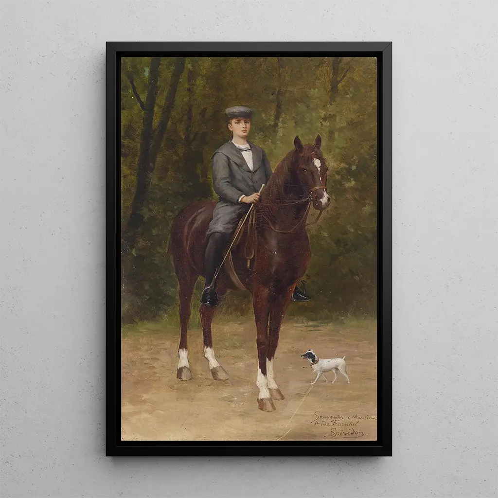 La reproduction "Oskar von Fraenkel à cheval" d'Ignace Spiridon capture un moment de grâce et de puissance. La toile, riche en détails, dépeint un homme en tenue d'équitation, majestueusement juché sur un cheval au galop. Les couleurs chaudes, mêlant des bruns profonds et des éclats dorés, insufflent une atmosphère dynamique et vivante. La technique de Spiridon, qui allie réalisme et touches impressionnistes, permet de ressentir le mouvement et l'énergie de la scène. Chaque coup de pinceau semble vibrer, évoquant la passion du cavalier et la noblesse de l'animal.