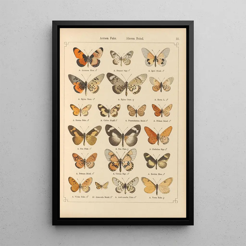 Papillons exotiques Pl033 : une symphonie de couleurs et de formes La reproduction de Papillons exotiques Pl033 nous transporte dans un univers où la nature s’exprime avec éclat et grâce. Les papillons, représentés dans toute leur splendeur, exhibent des teintes vives et variées, allant du rouge flamboyant au vert émeraude. La technique de Staudinger, qui mêle aquarelle et dessin, permet de rendre hommage à la beauté fragile de ces créatures. Chaque détail, des motifs des ailes aux ombres délicates, est soigneusement élaboré, créant une atmosphère à la fois dynamique et apaisante, propice à l’évasion. Otto Staudinger : un artiste au service de la nature Otto Staudinger, illustrateur et naturaliste du XIXe siècle, a su marier son amour pour la nature avec son talent artistique. Ses œuvres, souvent inspirées par des voyages et des études sur le terrain, témoignent d’une observation minutieuse et d’un respect profond pour la biodiversité. En tant que membre de la communauté scientifique, il a contribué à la documentation de nombreuses espèces, rendant ses illustrations non seulement belles mais également éducatives. L'importance de son travail réside dans sa capacité à éveiller les consciences sur la richesse du monde naturel à une époque où la science et l’art commençaient à se croiser. Une acquisition décorative aux multiples atouts La reproduction de Papillons exotiques Pl033 est une pièce décorative qui saura embellir n'importe quel espace de vie. Que vous souhaitiez l'accrocher dans un salon, un bureau ou une chambre, ce tableau apportera une touche de fraîcheur et de couleur à votre intérieur. Sa qualité d’impression assure une fidélité remarquable aux détails et aux couleurs de l’original, faisant de cette toile un choix esthétique et durable. En intégrant cette œuvre dans votre décoration, vous vous offrez non seulement un élément visuel captivant, mais aussi une invitation à célébrer la beauté de la nature au quotidien.