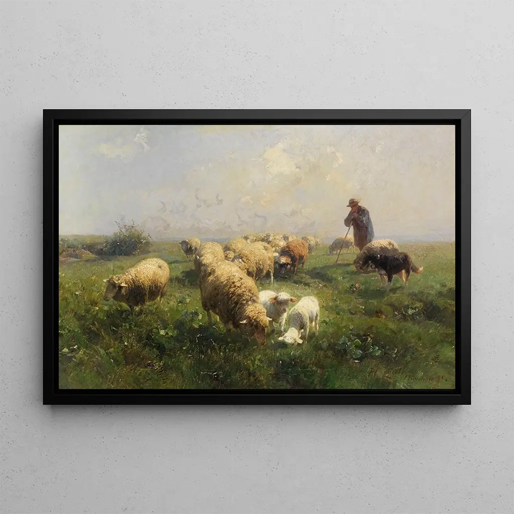 Heinrich von Zügel, peintre allemand du XIXe siècle, est reconnu pour ses représentations de la nature et des animaux. Influencé par le mouvement romantique, il a su capturer l’harmonie entre l’homme et la nature. Sa carrière s’étend sur plusieurs décennies, durant lesquelles il a développé un style unique, alliant précision et poésie. Zügel a également été influencé par ses voyages à travers l’Europe, ce qui a enrichi sa palette et sa vision artistique. Son œuvre "Pâturage ensoleillé" témoigne de son talent pour immortaliser des scènes rurales, faisant de lui une figure incontournable de l’art animalier.
