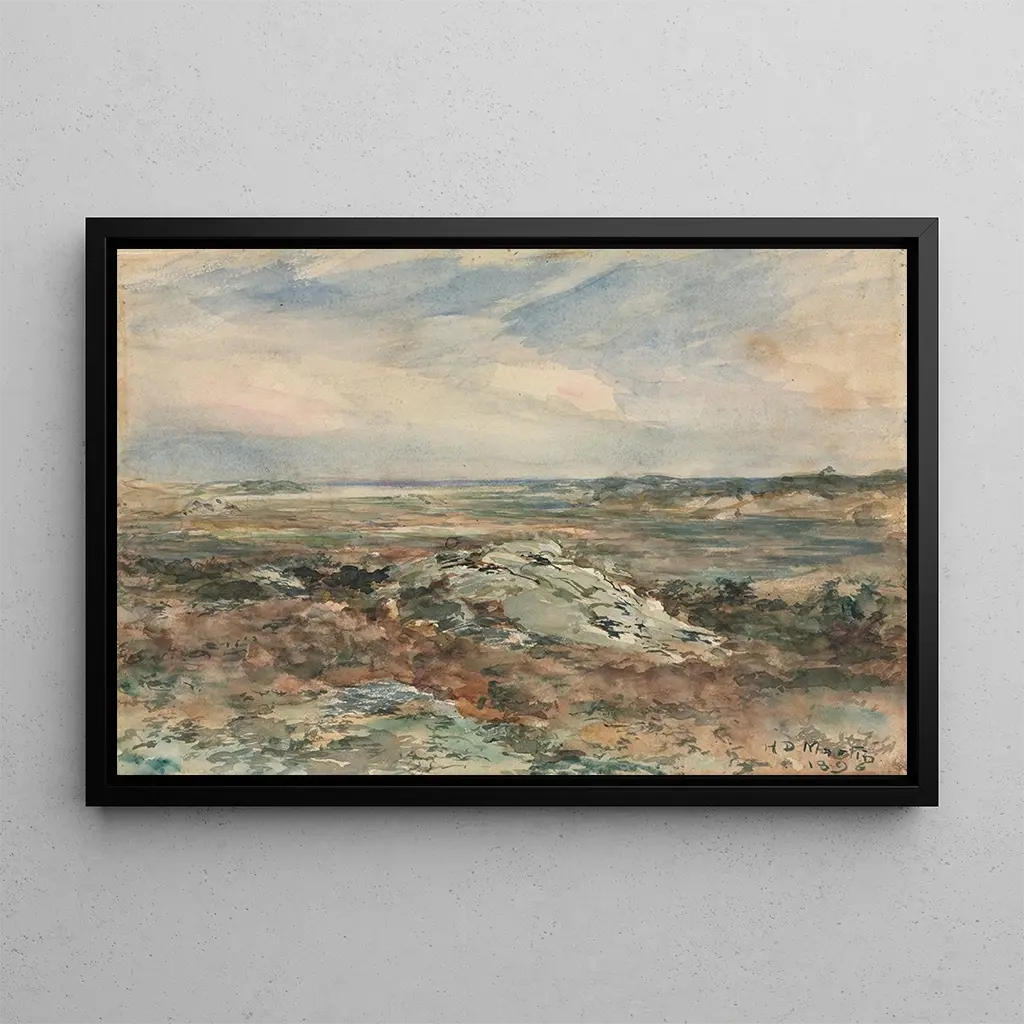 Paysage : une harmonie entre nature et lumière Le tableau Paysage de Homer Dodge Martin évoque une sérénité palpable, où la nature se déploie dans toute sa splendeur. Les couleurs douces et les nuances délicates créent une atmosphère paisible, invitant le spectateur à s'immerger dans ce paysage idyllique. La technique de Martin, caractérisée par des coups de pinceau fluides et une attention minutieuse aux détails, donne vie à chaque élément, des arbres majestueux aux reflets scintillants sur l'eau. Ce tableau, véritable ode à la beauté naturelle, transporte l'observateur dans un monde de tranquillité. Homer Dodge Martin : un maître du paysage américain Homer Dodge Martin, actif au XIXe siècle, est souvent considéré comme l'un des pionniers du paysage américain. Influencé par le mouvement romantique et les impressionnistes européens, il a su développer un style unique qui allie réalisme et poésie. Sa carrière a été marquée par une exploration constante des effets de la lumière et de l'atmosphère sur le paysage. Martin a également été un membre influent de l'Académie nationale de design, contribuant à l'évolution de l'art paysager aux États-Unis. Ses œuvres, dont Paysage, témoignent de son talent exceptionnel et de son engagement envers la nature. Une acquisition décorative aux multiples atouts La reproduction du tableau Paysage est une pièce décorative idéale pour enrichir votre intérieur. Que ce soit dans un salon, un bureau ou une chambre, cette toile apporte une touche de sérénité et de beauté naturelle à votre espace. Sa qualité de reproduction garantit une fidélité remarquable aux couleurs et aux détails de l'œuvre originale, tout en offrant un attrait esthétique indéniable. En choisissant cette œuvre, vous optez pour une décoration qui inspire la paix et la contemplation, transformant ainsi votre environnement en un havre de paix.