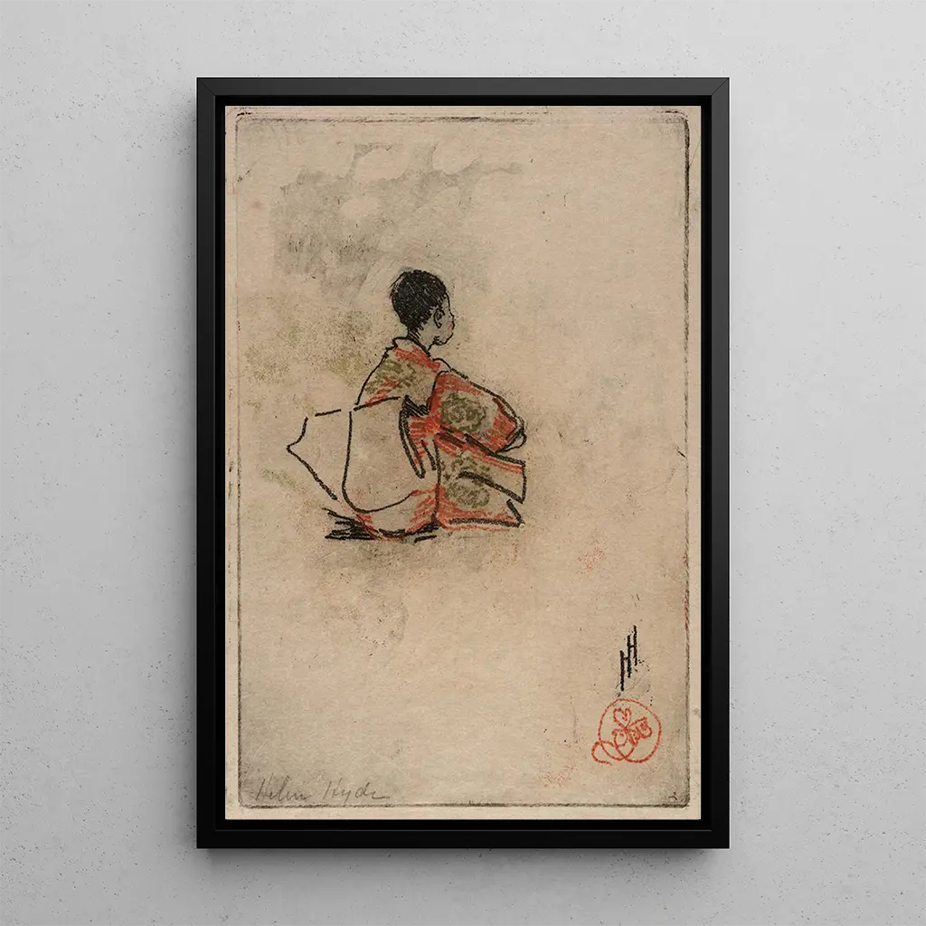 Helen Hyde, née en 1868, est une artiste américaine qui a su se démarquer par son style unique, mêlant influences japonaises et américaines. Active principalement entre 1890 et 1920, elle a exploré divers thèmes, mais la danse et la féminité occupent une place centrale dans son œuvre. Petite danseuse du No est un exemple parfait de son approche artistique, où elle parvient à capturer l'essence même de la grâce féminine. Son travail a été reconnu et apprécié, faisant d'elle une figure importante dans l'histoire de l'art, notamment pour son rôle dans l'émancipation des femmes artistes.