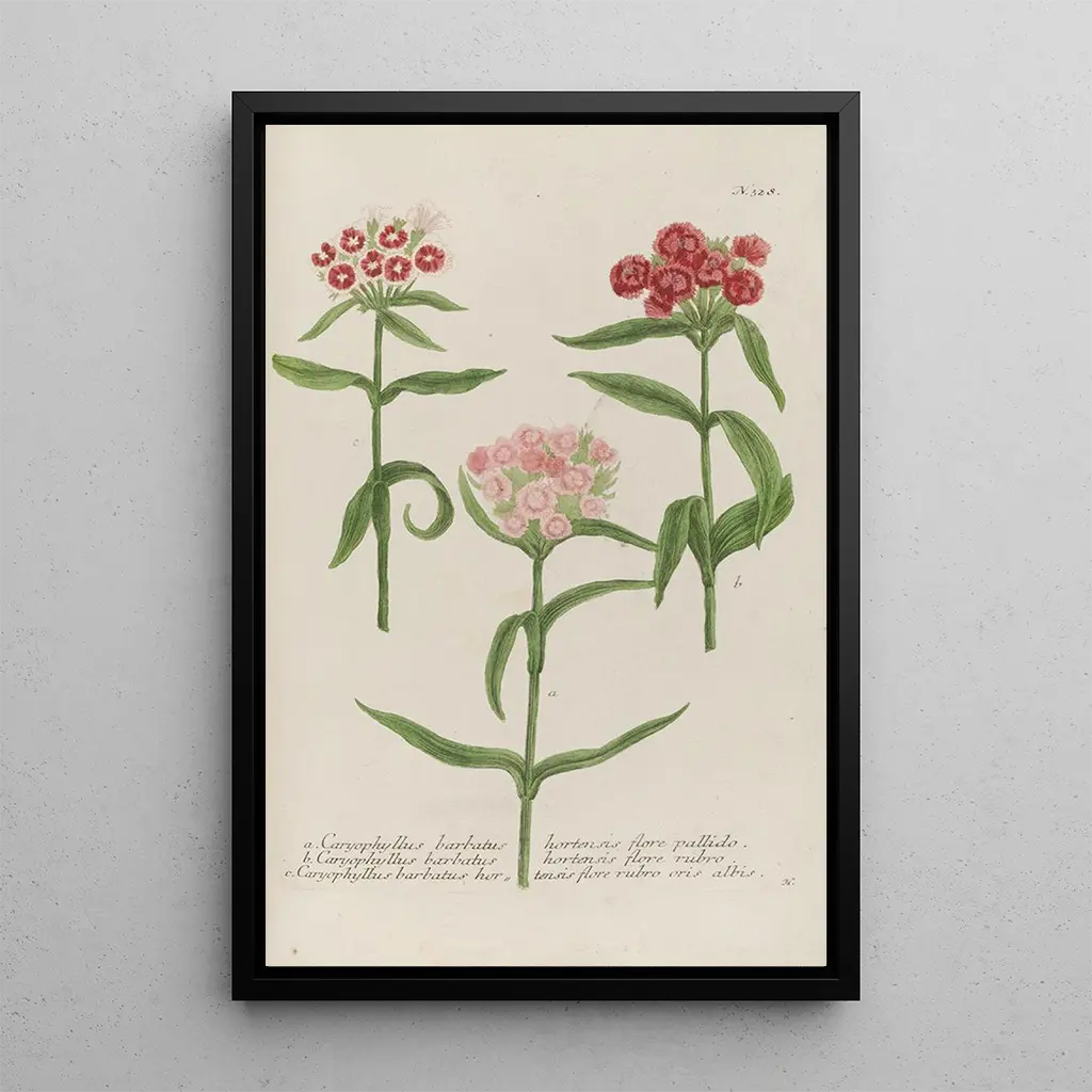 La reproduction de Phytanthoza iconographia Pl051 offre un aperçu captivant de la richesse florale, révélant des espèces aux formes et couleurs variées. Chaque détail est soigneusement rendu, des pétales délicats aux feuilles luxuriantes, créant une atmosphère de sérénité et d'harmonie. L'œuvre de Johann Wilhelm Weinmann, par son utilisation subtile de la lumière et des ombres, évoque une sensation de profondeur et de réalisme. Cette toile est une véritable invitation à explorer le monde fascinant des plantes, où chaque élément raconte une histoire unique.