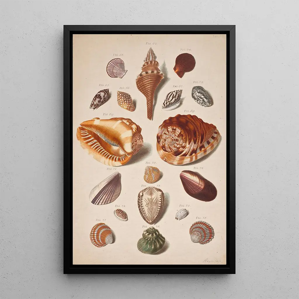 La reproduction de la Planche d'illustrations avec coquillages est une pièce décorative qui s'intègre harmonieusement dans divers espaces, que ce soit dans un salon, un bureau ou une chambre. Sa qualité d'impression et sa fidélité aux détails originaux en font un choix idéal pour les amateurs d'art et de nature. L'attrait esthétique de cette toile réside dans sa capacité à évoquer des souvenirs de vacances en bord de mer ou à inspirer des conversations sur la biodiversité marine. En ajoutant cette œuvre à votre décoration, vous apportez une touche d'élégance et de sérénité à votre intérieur, tout en célébrant la beauté des merveilles naturelles.