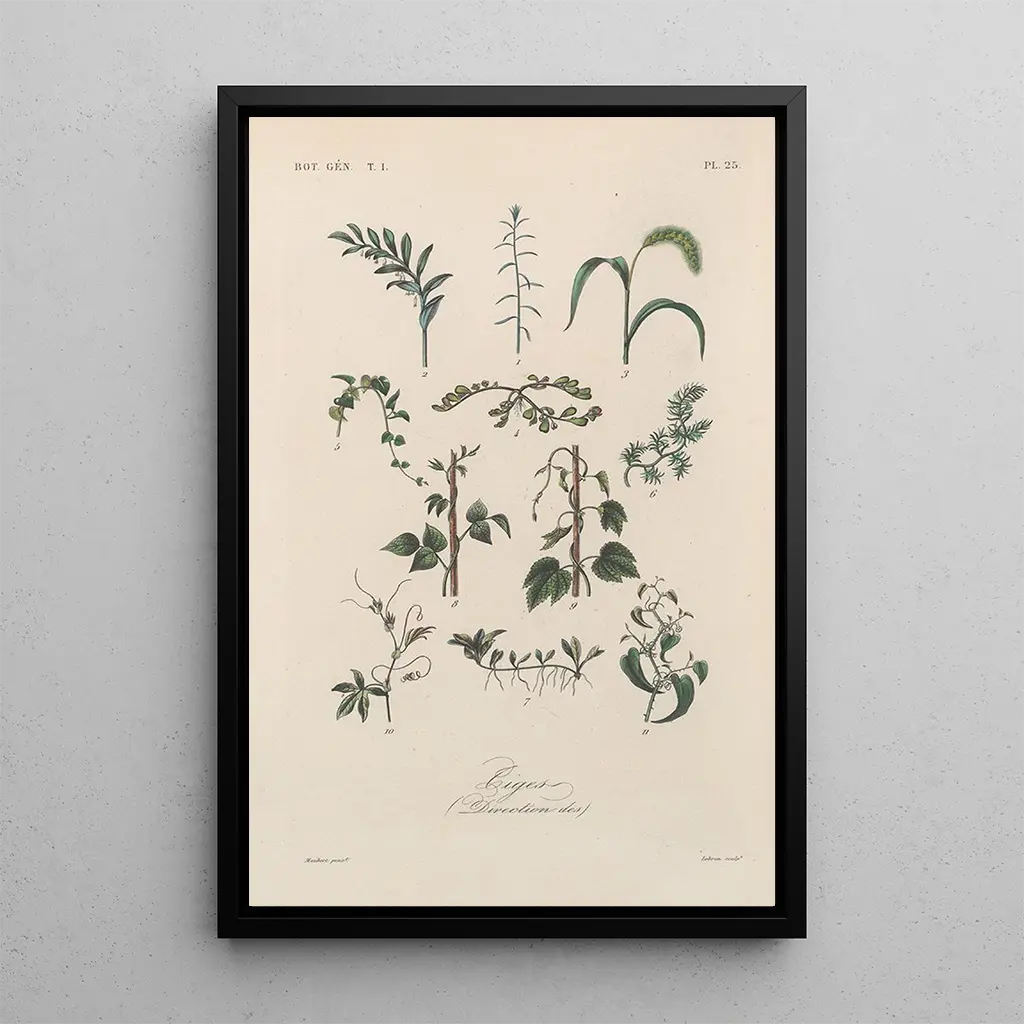 Dans cette reproduction du tableau Traité de botanique générale Pl025, François Hérincq nous invite à plonger dans un monde où la botanique et l'art se rencontrent. Les détails minutieux des plantes, les couleurs vibrantes et la composition harmonieuse créent une atmosphère apaisante et contemplative. Chaque élément de la toile semble respirer la vie, révélant la beauté intrinsèque de la nature. La technique de l'artiste, alliant précision scientifique et sensibilité artistique, nous transporte dans un univers où chaque feuille et chaque fleur racontent une histoire.