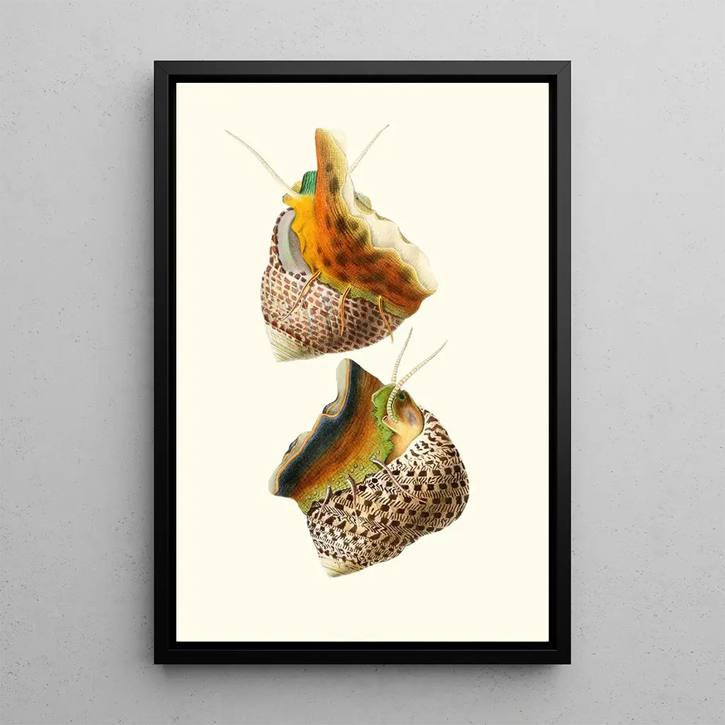 Trochus turbinas Trochus articulatus : une danse des coquillages marins La reproduction de Trochus turbinas et Trochus articulatus nous plonge dans un univers marin fascinant. Ces coquillages, avec leurs formes spiralées et leurs nuances de couleurs allant du beige au brun, évoquent la beauté des fonds marins. La technique de représentation met en avant les détails minutieux de leur texture, créant une atmosphère à la fois apaisante et intrigante. Chaque coquillage semble raconter une histoire, une invitation à explorer les mystères de l'océan et à apprécier la diversité de la vie marine. Georges Servain : un pionnier de l'illustration naturaliste Georges Servain, artiste et illustrateur du XIXe siècle, a su capturer la richesse du monde naturel à travers ses œuvres. Influencé par les courants du naturalisme, il a consacré sa carrière à l'étude et à la représentation des espèces marines. Ses illustrations, souvent réalisées avec une précision scientifique, témoignent de son engagement envers la beauté de la nature et de sa volonté de sensibiliser le public à la préservation des écosystèmes marins. Servain a ainsi marqué son époque en alliant art et science, faisant de ses œuvres des références dans le domaine de l'illustration naturaliste. Une acquisition décorative aux multiples atouts La reproduction de Trochus turbinas et Trochus articulatus constitue une pièce décorative idéale pour divers espaces, que ce soit dans un salon, un bureau ou une chambre. Sa qualité d'impression et sa fidélité aux détails originaux en font un choix attrayant pour les amateurs d'art et de nature. En intégrant cette toile dans votre décoration, vous apportez une touche d'élégance et de sérénité à votre intérieur, tout en célébrant la beauté des créatures marines. Ce tableau saura captiver les regards et susciter des conversations, enrichissant ainsi votre environnement de vie.