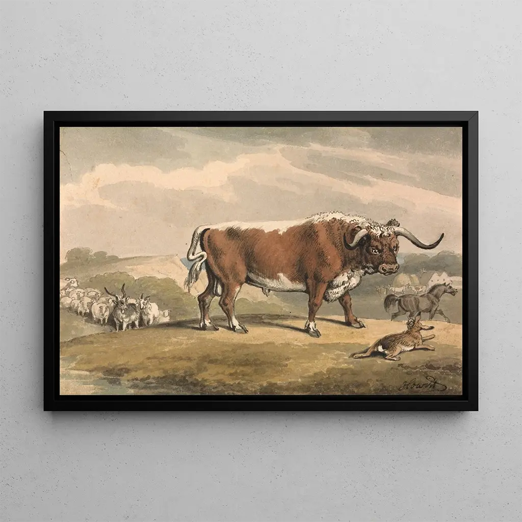 Dans cette œuvre captivante, Samuel Howitt nous plonge dans un tableau vivant où un taureau majestueux se tient face à un lapin curieux. Les couleurs vibrantes et les détails minutieux de la faune sauvage créent une atmosphère à la fois paisible et dynamique. La technique de l’aquarelle, utilisée avec finesse, permet de capturer la lumière naturelle, accentuant les textures des pelages et des feuillages environnants. Ce tableau, véritable ode à la nature, invite le spectateur à contempler la beauté des animaux et leur coexistence dans un même espace.