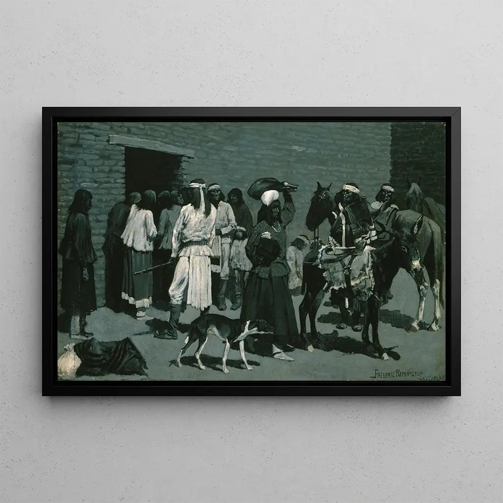 Village indien Pueblo : un hommage à la culture amérindienne Le tableau Village indien Pueblo de Frederic Remington nous transporte au cœur des paysages majestueux du Sud-Ouest américain. Cette œuvre vibrante dépeint une scène de vie au sein d'un village Pueblo, où les maisons en adobe s'intègrent harmonieusement dans le décor naturel. Les couleurs chaudes, allant des ocres aux rouges profonds, évoquent la terre et le ciel, tandis que les personnages, vêtus de costumes traditionnels, ajoutent une dimension humaine à cette représentation. Remington, avec sa technique précise et dynamique, parvient à capturer l'essence de la culture amérindienne, rendant hommage à un mode de vie en parfaite symbiose avec la nature. Frederic Remington : le chroniqueur de l'Ouest américain Frederic Remington, actif à la fin du XIXe siècle, est célèbre pour ses représentations de la vie dans l'Ouest américain. Artiste, illustrateur et sculpteur, il a su immortaliser les cow-boys, les indiens et les paysages sauvages de cette époque. Influencé par ses voyages et ses rencontres avec les peuples autochtones, Remington a développé un style unique, mêlant réalisme et romantisme. Son œuvre est un témoignage précieux de l'histoire américaine, capturant des moments de bravoure et de beauté. En tant qu'artiste emblématique, il a contribué à façonner l'image de l'Ouest dans l'imaginaire collectif. Une acquisition décorative aux multiples atouts La reproduction du Village indien Pueblo est un choix décoratif qui saura enrichir votre espace de vie. Que ce soit dans un salon, un bureau ou une chambre, ce tableau apporte une touche d'authenticité et d'exotisme. Sa qualité de reproduction assure une fidélité aux couleurs et aux détails de l'œuvre originale, permettant à chacun de ressentir la profondeur de cette scène. Avec son attrait esthétique, cette toile s'intègre parfaitement dans divers styles de décoration, tout en offrant une fenêtre sur une culture riche et fascinante, invitant à la découverte et à l'évasion.