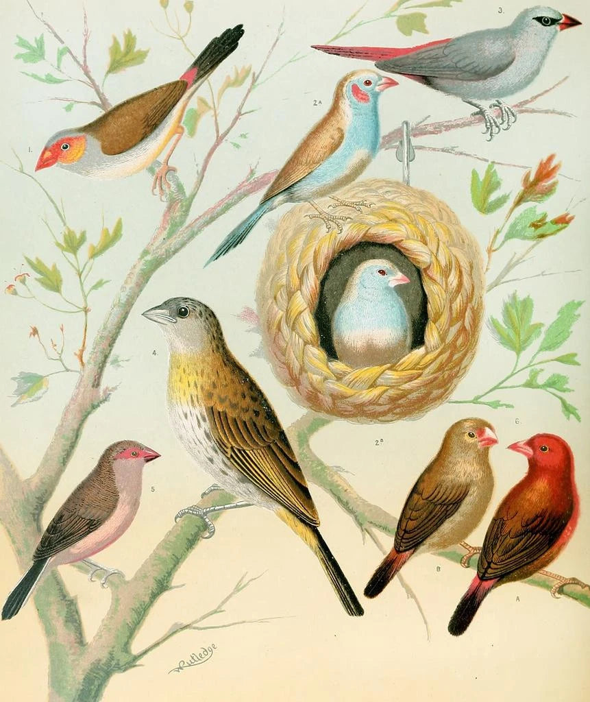 Tableau Waxbills, pinson safran et pinson du feu africain - W. A. Blakston | Reproduction