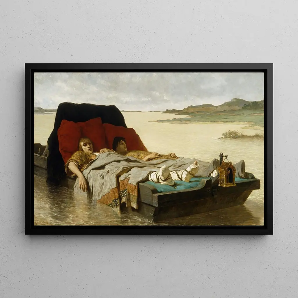 La riproduzione di "Les fils de Clovis II" ci immerge in una scena storica ricca di dettagli ed emozioni. Évariste Vital Luminais, con la sua maestria nel colore e nella luce, riesce a catturare l'intensità dei personaggi rappresentati. Le tonalità vivaci e i contrasti sorprendenti danno vita a questa opera, dove ogni figura sembra raccontare una storia. La tecnica pittorica, combinando realismo e romanticismo, crea un'atmosfera drammatica che attira immediatamente lo sguardo e stimola l'immaginazione, permettendo allo spettatore di immergersi in quest'epoca passata.