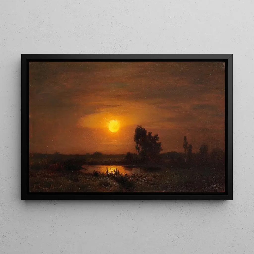 Louis Douzette, attivo nel XIX secolo, è riconosciuto per i suoi paesaggi poetici e le sue scene di vita quotidiana. Influenzato dal movimento impressionista, si è specializzato nella cattura degli effetti di luce e delle atmosfere mutevoli. Lever de lune sur l'étang illustra perfettamente il suo talento nel rappresentare la natura nella sua interezza. In un'epoca in cui l'arte si libera dalle convenzioni accademiche, Douzette si distingue per la sua capacità di evocare emozioni attraverso paesaggi semplici ma evocativi. La sua opera continua ad essere celebrata per la sua bellezza e sensibilità.