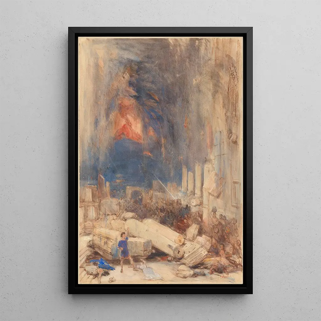 La Destruction de Pompéi : un drame figé dans le temps La Destruction de Pompéi, œuvre emblématique de David Roberts, nous plonge dans un tableau saisissant où la tragédie se mêle à la beauté. Les couleurs chaudes et les ombres profondes évoquent la chaleur du volcan Vésuve, tandis que les détails minutieux des ruines rappellent la grandeur perdue de cette cité antique. La technique de l’aquarelle, utilisée avec maestria, donne vie à cette scène apocalyptique, où le mouvement des nuages de cendres semble presque palpable. L’atmosphère est à la fois mélancolique et fascinante, invitant le spectateur à réfléchir sur la fragilité de la civilisation. David Roberts : un témoin de l’Orient romantique David Roberts, peintre écossais du XIXe siècle, est reconnu pour ses représentations des paysages orientaux et des monuments antiques. Influencé par le mouvement romantique, il a voyagé à travers l'Égypte, la Grèce et le Moyen-Orient, capturant la magnificence des sites historiques. Ses œuvres, comme La Destruction de Pompéi, témoignent de son souci du détail et de son désir de transmettre l’émotion des lieux visités. Roberts a également joué un rôle clé dans la popularisation des voyages en Orient à travers ses aquarelles, devenant ainsi une figure incontournable de l’art britannique de son époque. Une acquisition décorative aux multiples atouts La reproduction de La Destruction de Pompéi est une pièce maîtresse qui s’intègre parfaitement dans divers espaces, que ce soit un salon, un bureau ou une chambre. Sa qualité d’impression et sa fidélité aux couleurs originales en font un choix idéal pour les amateurs d’art et d’histoire. En ajoutant ce tableau à votre décoration, vous apportez une touche d’élégance et de culture à votre intérieur. L’attrait esthétique de cette œuvre, avec son mélange de drame et de beauté, ne manquera pas d’éveiller les conversations et d’enrichir l’ambiance de votre espace de vie.