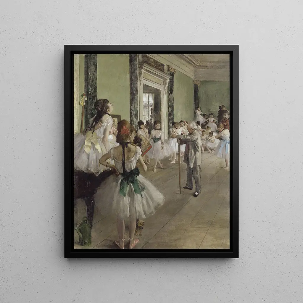 La classe di ballet di Edgar Degas è un'opera iconica che cattura l'essenza stessa della danza attraverso il prisma dell'impressionismo. Questo quadro, dipinto alla fine del XIX secolo, ci immerge nell'affascinante universo delle ballerine, mescolando grazia e rigore. La scena si svolge in una sala da ballo, dove giovani ragazze, vestite di tutù, si esercitano sotto lo sguardo attento della loro insegnante. Degas, maestro dell'osservazione, riesce a immortalare un istante fugace, rivelando non solo la bellezza del movimento, ma anche l'intimità di un momento di lavoro e disciplina. La luce soffusa che filtra attraverso le finestre crea un'atmosfera quasi eterea, invitando lo spettatore a immergersi in questo mondo delicato ed esigente. Stile e unicità dell’opera La classe di balletto si distingue per il suo stile unico, mescolando elementi realistici a un approccio impressionista. Degas, sebbene associato al movimento impressionista, si distingue per la sua capacità di catturare momenti di vita con una precisione quasi fotografica. Le pose delle ballerine, sia naturali che stilizzate, testimoniano una comprensione approfondita del corpo umano e della dinamica del movimento. I colori usati, che vanno dai pastelli morbidi alle tonalità più vivaci, evocano leggerezza e fluidità delle danze. L'artista gioca anche con angoli di vista audaci, offrendoci una prospettiva che ci colloca quasi come osservatori privilegiati, come se fossimo presenti nella sala da ballo. Questo approccio innovativo conferisce all'opera una profondità e una ricchezza che trascendono il semplice quadro, facendo di ogni sguardo una nuova scoperta. L’artista e la sua influenza Edgar Degas, nato nel 1834, è spesso considerato uno dei più grandi artisti del XIX secolo. La sua passione per la danza e il suo impegno verso la rappresentazione della vita moderna lo hanno portato a esplorare temi vari, ma è probabilmente il suo studio delle ballerine che ha maggiormente segnato la sua opera. Influenzato dai suoi contemporanei, Degas ha saputo fondere la tecnica accademica con un approccio più libero, ridefinendo così i codici della pittura. La sua influenza perdura ancora oggi, ispirando numerosi artisti e fotografi che cercano