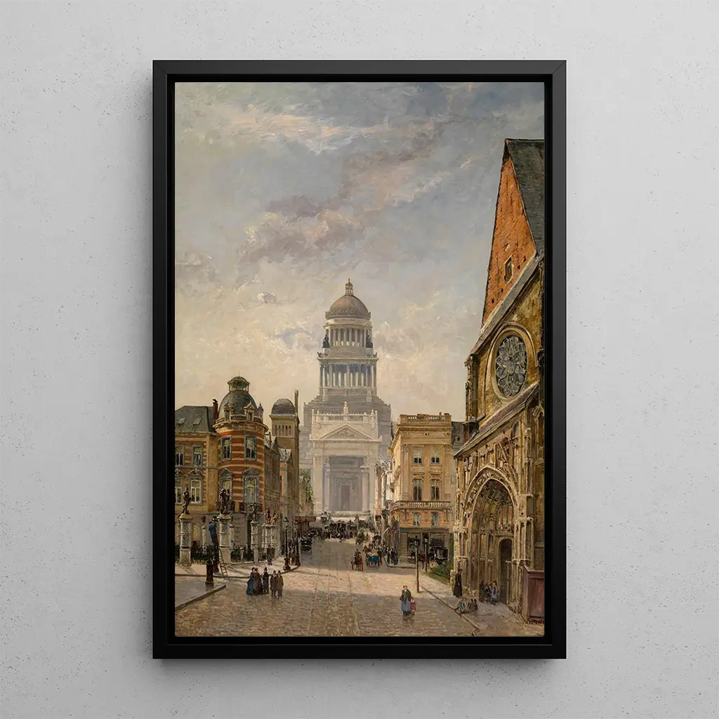 Rue de la Régence à Bruxelles : un tableau de vie urbaine "Rue de la Régence à Bruxelles" de Gustave Walckiers est une œuvre qui capture l'essence vibrante de la vie urbaine bruxelloise. Avec une palette de couleurs chaudes et accueillantes, Walckiers dépeint une scène animée où les passants, les bâtiments et les arbres s'entrelacent harmonieusement. La technique de l'artiste, marquée par des coups de pinceau expressifs, confère à la toile une atmosphère vivante et dynamique. Chaque détail, des pavés aux façades, raconte une histoire, invitant le spectateur à explorer cette rue emblématique de la capitale belge. Gustave Walckiers : un témoin de l'urbanisme belge Gustave Walckiers, actif à la fin du XIXe et au début du XXe siècle, est un peintre belge dont le travail reflète les changements rapides de l'urbanisme à Bruxelles. Influencé par le mouvement impressionniste, il a su capturer la lumière et le mouvement de la ville avec une sensibilité unique. Ses œuvres, souvent centrées sur des scènes de la vie quotidienne, témoignent d'une époque où la ville se modernisait tout en conservant son charme historique. Walckiers est considéré comme un acteur important de la scène artistique belge, apportant une vision personnelle et poétique de son environnement. Une acquisition décorative aux multiples atouts La reproduction de "Rue de la Régence à Bruxelles" est un choix décoratif idéal pour enrichir votre intérieur. Que ce soit dans un salon, un bureau ou une chambre, cette toile apporte une touche de chaleur et de convivialité. Sa qualité d'impression garantit une fidélité aux couleurs et aux détails de l'œuvre originale, faisant de cette reproduction un véritable atout esthétique. En choisissant cette œuvre, vous invitez non seulement un morceau d'histoire dans votre espace, mais vous créez également une ambiance inspirante et accueillante, propice à la réflexion et à la conversation.